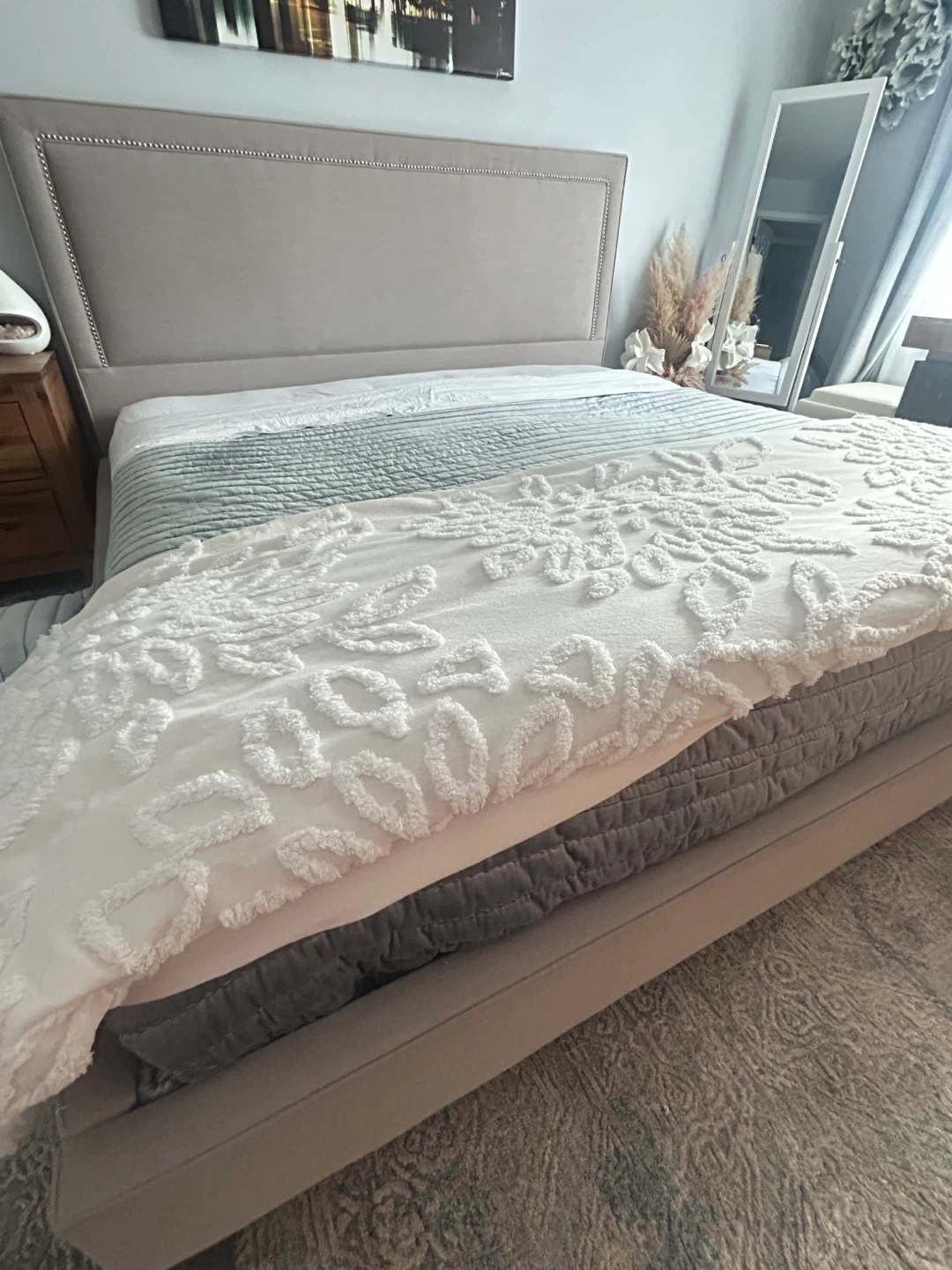 Queen Size Bed-frame with headboard and motion lights