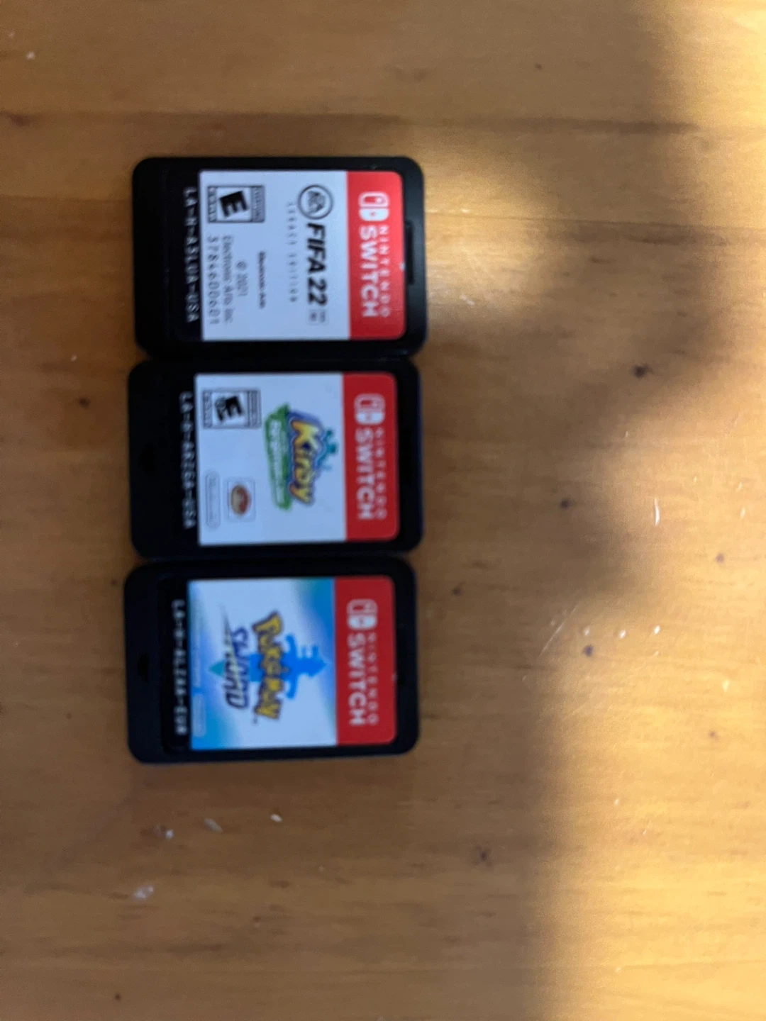 Includes FIFA 22, Kirby, and Pokemon Sword for Nintendo Switch. These are cartridge-based games. Tested and working!