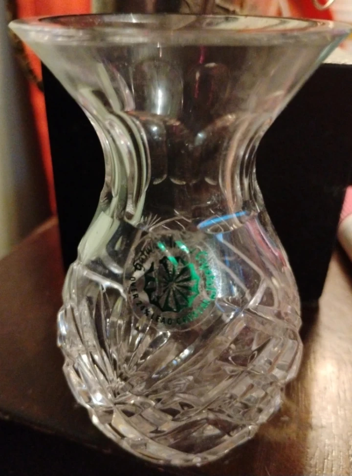 Galway Crystal vase made in Ireland. It's crafted from over 24% lead crystal. This piece has a diamond cut pattern.