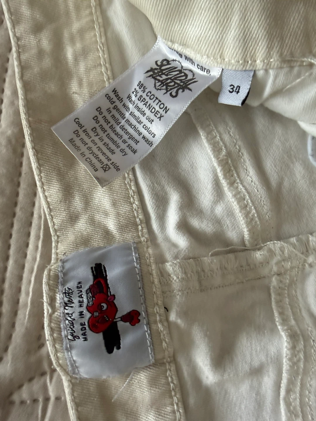 Suicidal Hearts Stacked Cargo Jeans Cream 34 Streetwear