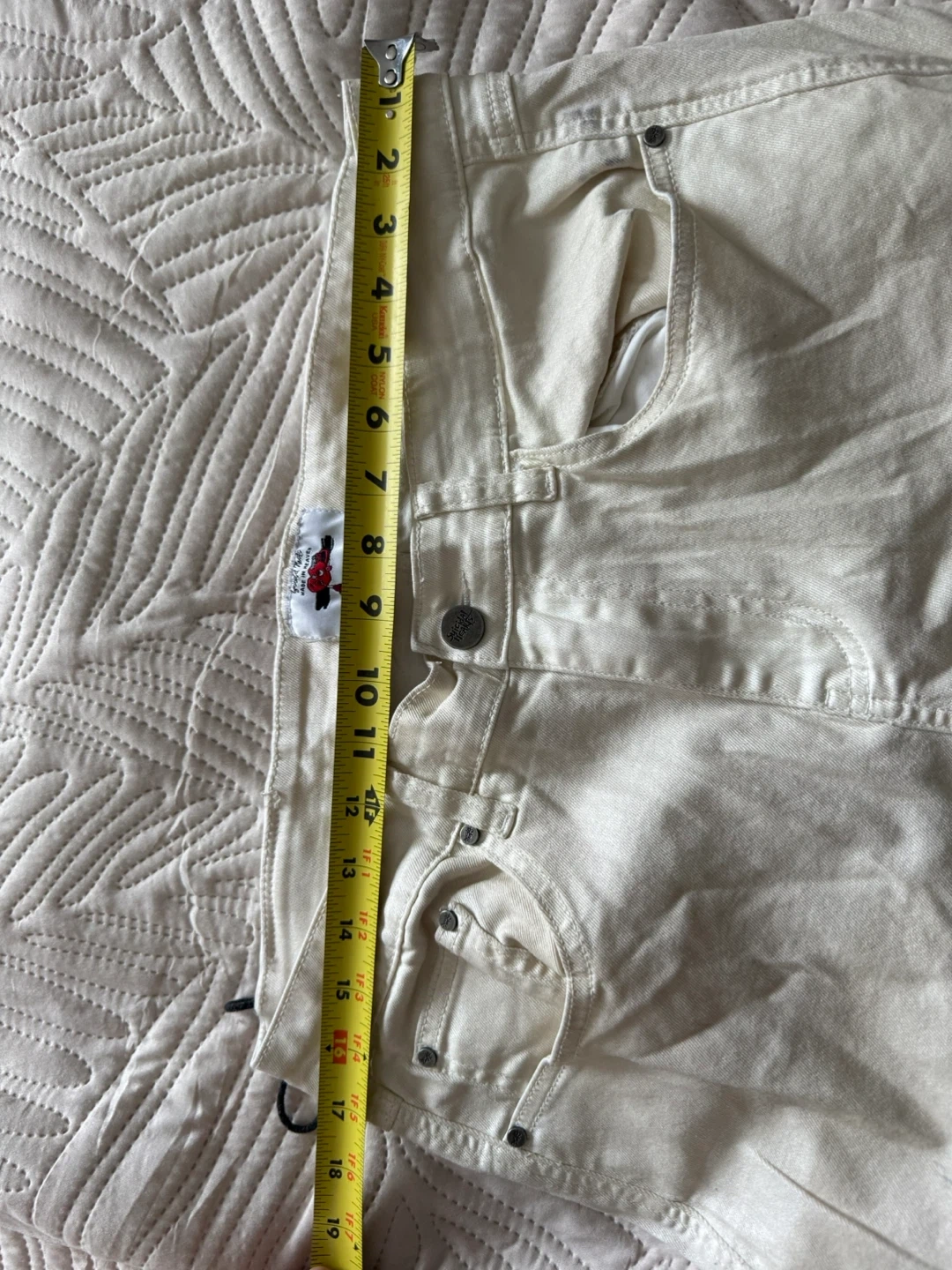 Streetwear design with embroidered logo on back pocket.