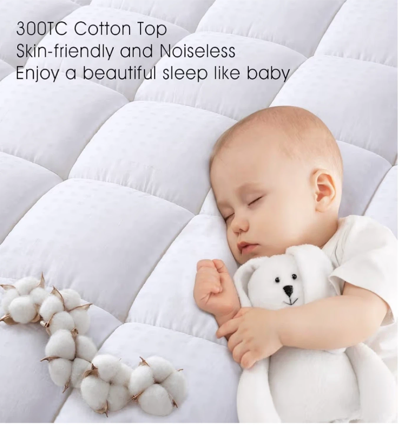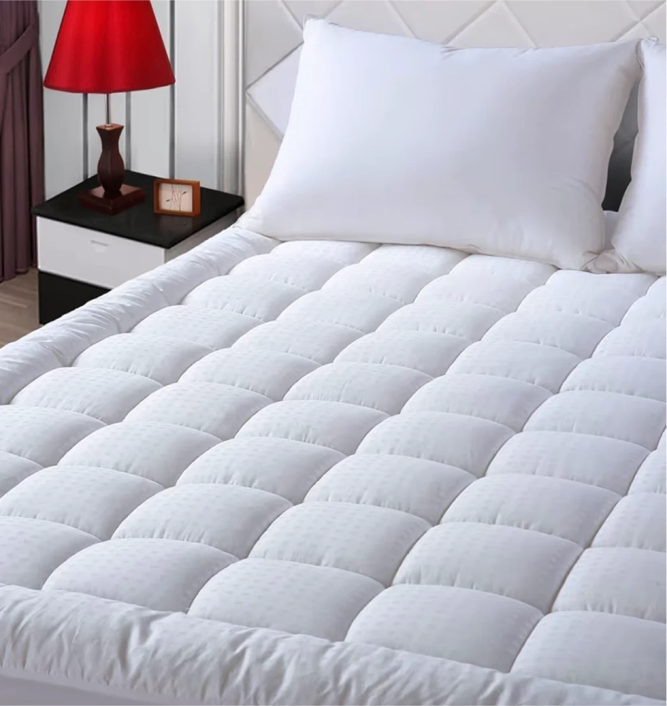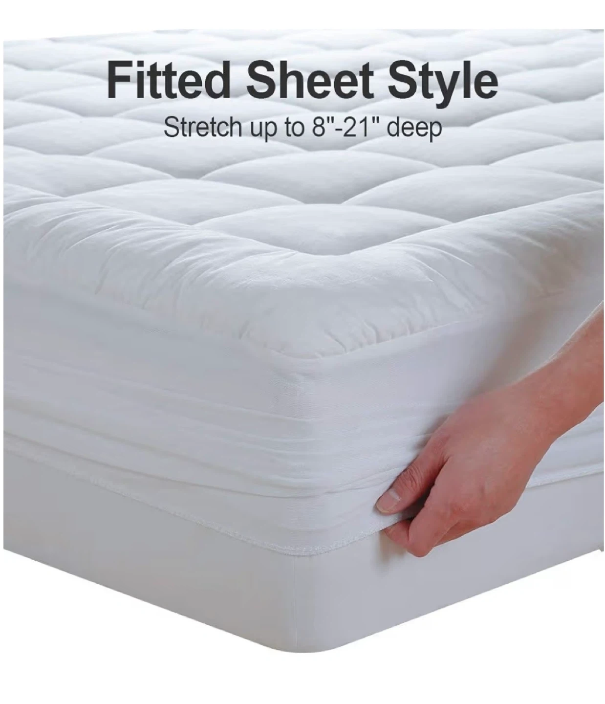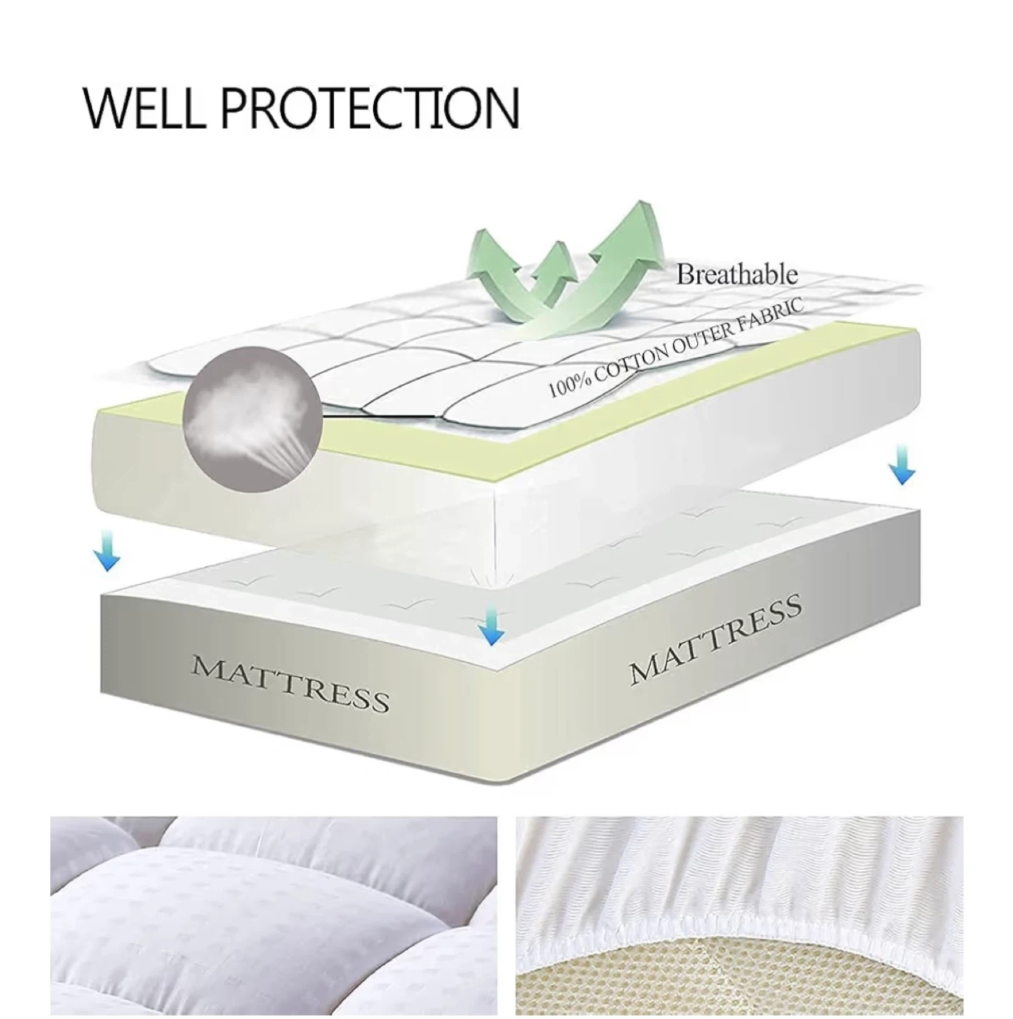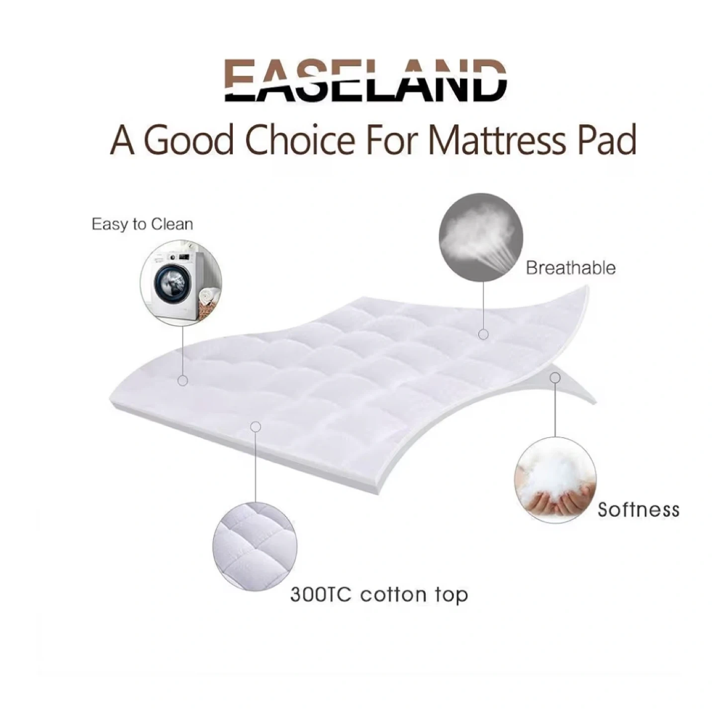 EASELAND Queen Size Mattress Pad Pillow Top Mattress Cover Quilted Fitted Mattress Protector Cotton Top Stretches up 8-21" Deep Pocket Cooling Mattress Topper (60x80 inch, White)