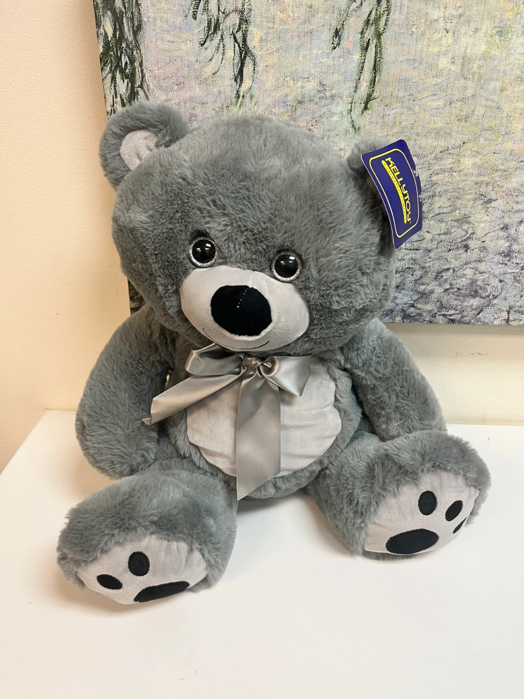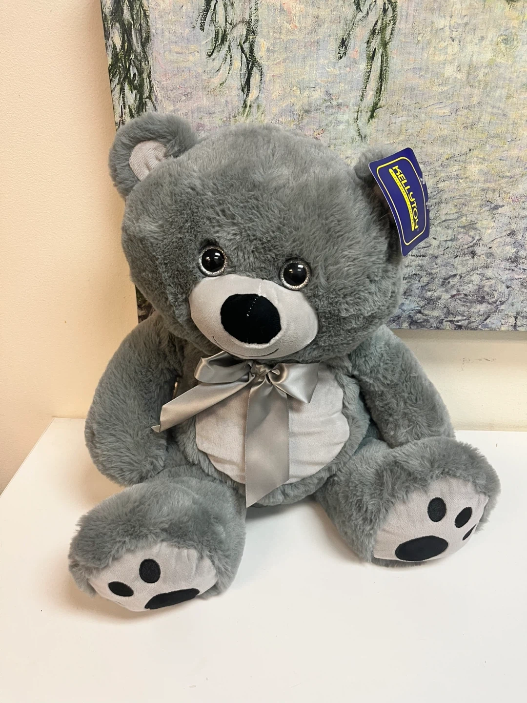 This is a brand new, super soft gray teddy bear from Kellytoy! It has a cute ribbon and is ready for a new friend. Perfect for ages 0+