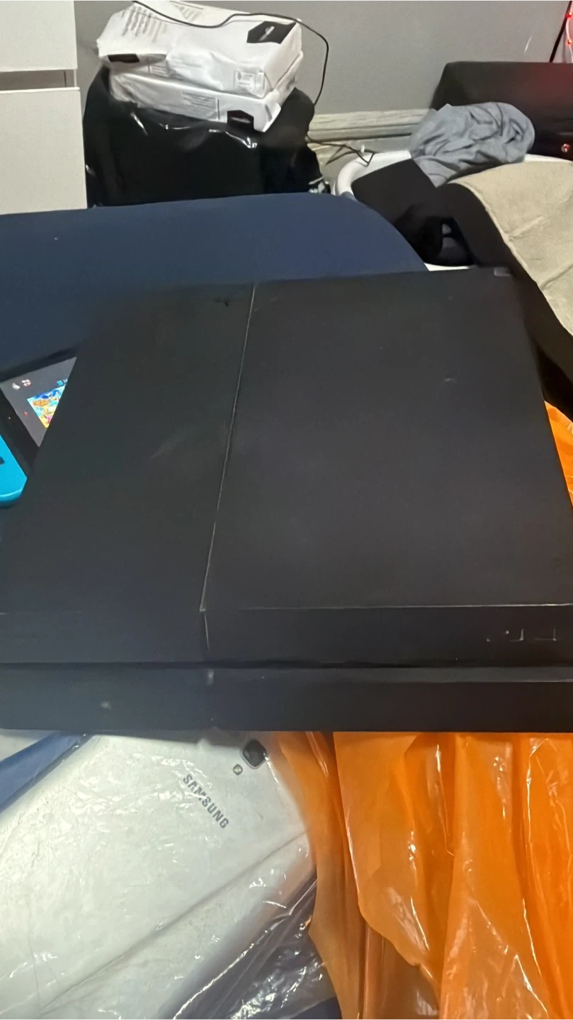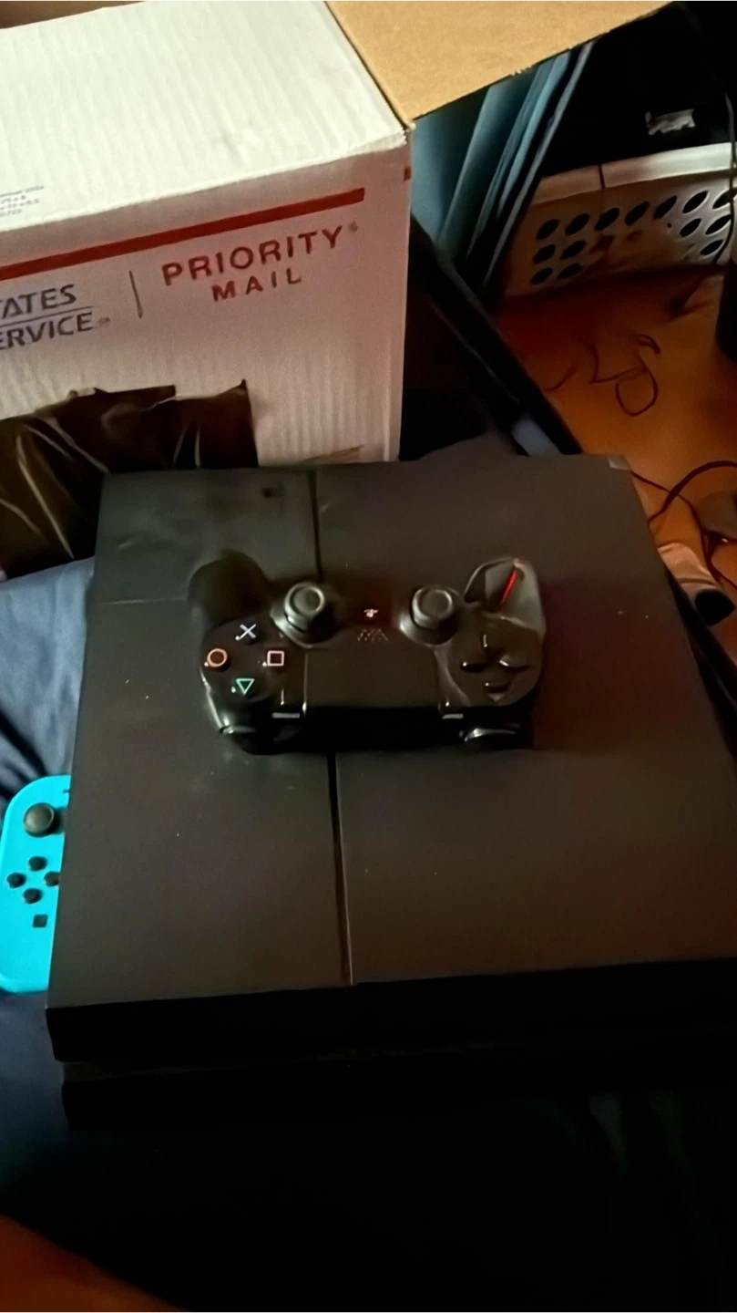 Selling a PlayStation 4 console in black, complete with a controller! It's in good condition and ready for a new home. Perfect for gaming!