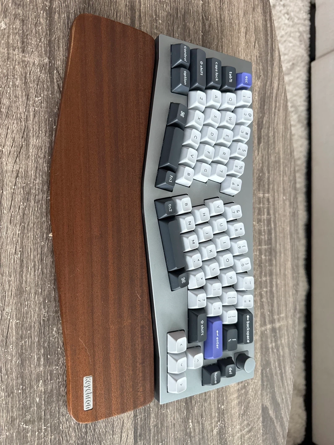 This Keychron Q8 Pro ergonomic split keyboard is designed for comfort. It comes with a supportive wooden wrist rest. Its split design helps promote a more natural hand and wrist posture. Keychron K Pro Red Switch