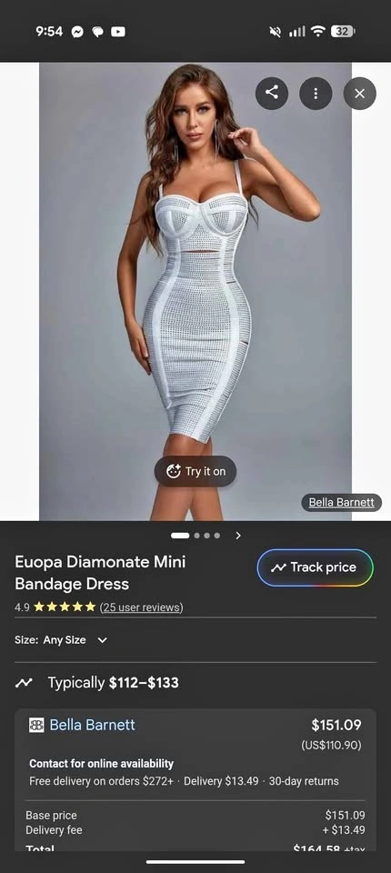 Stunning Bella Barnett dress. White mini bandage style with diamonate details. Very form-fitting. Size XL (fits 12-14).