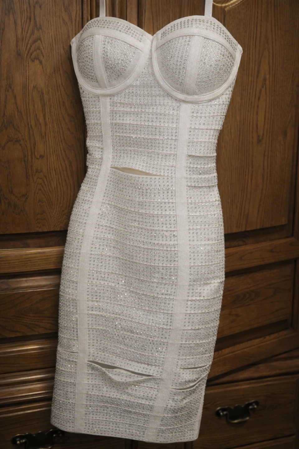 Bella Barnett White Euopa Diamonate Mini Bandage Dress