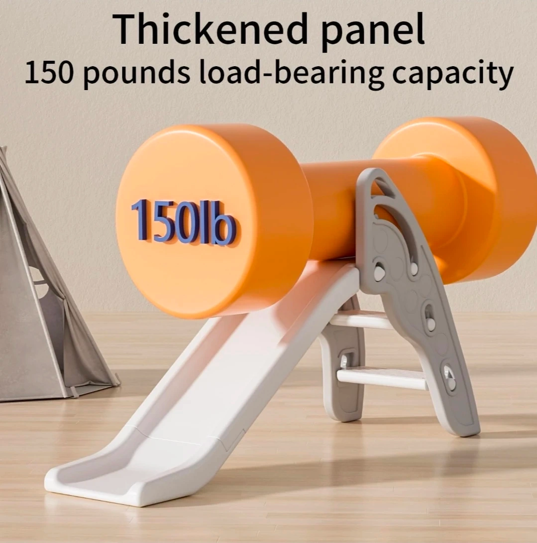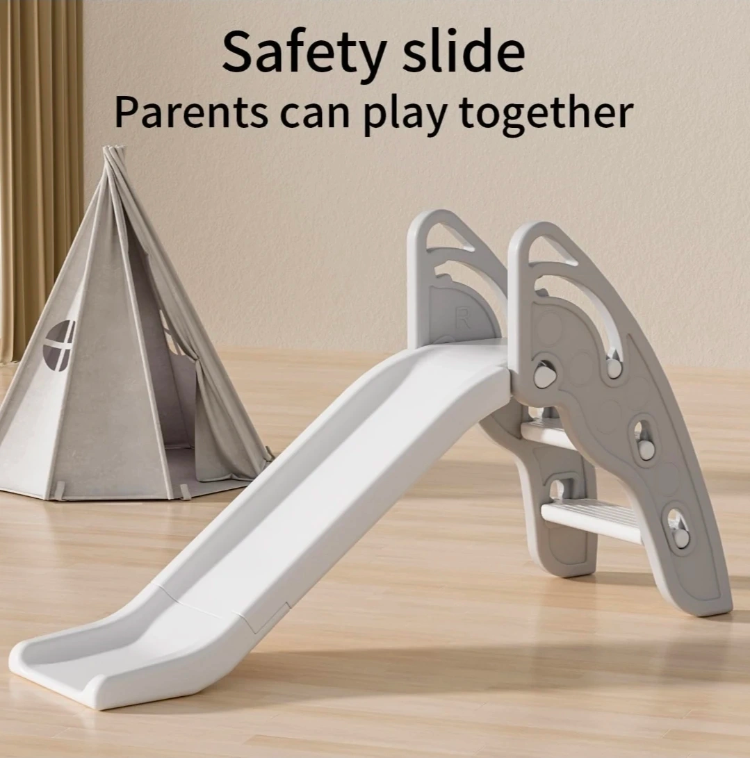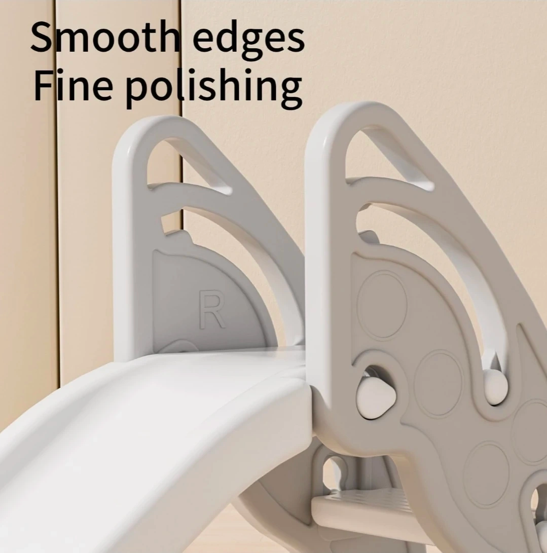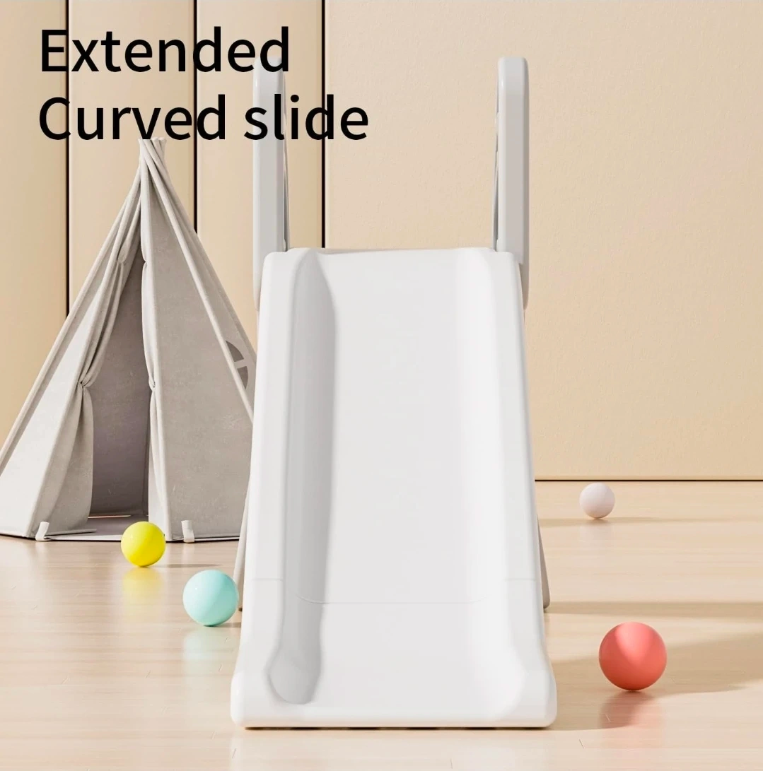 This children's slide features an extended curved design for added fun. It has smooth edges and fine polishing for safety. Parents can play together with their kids on this sturdy slide.