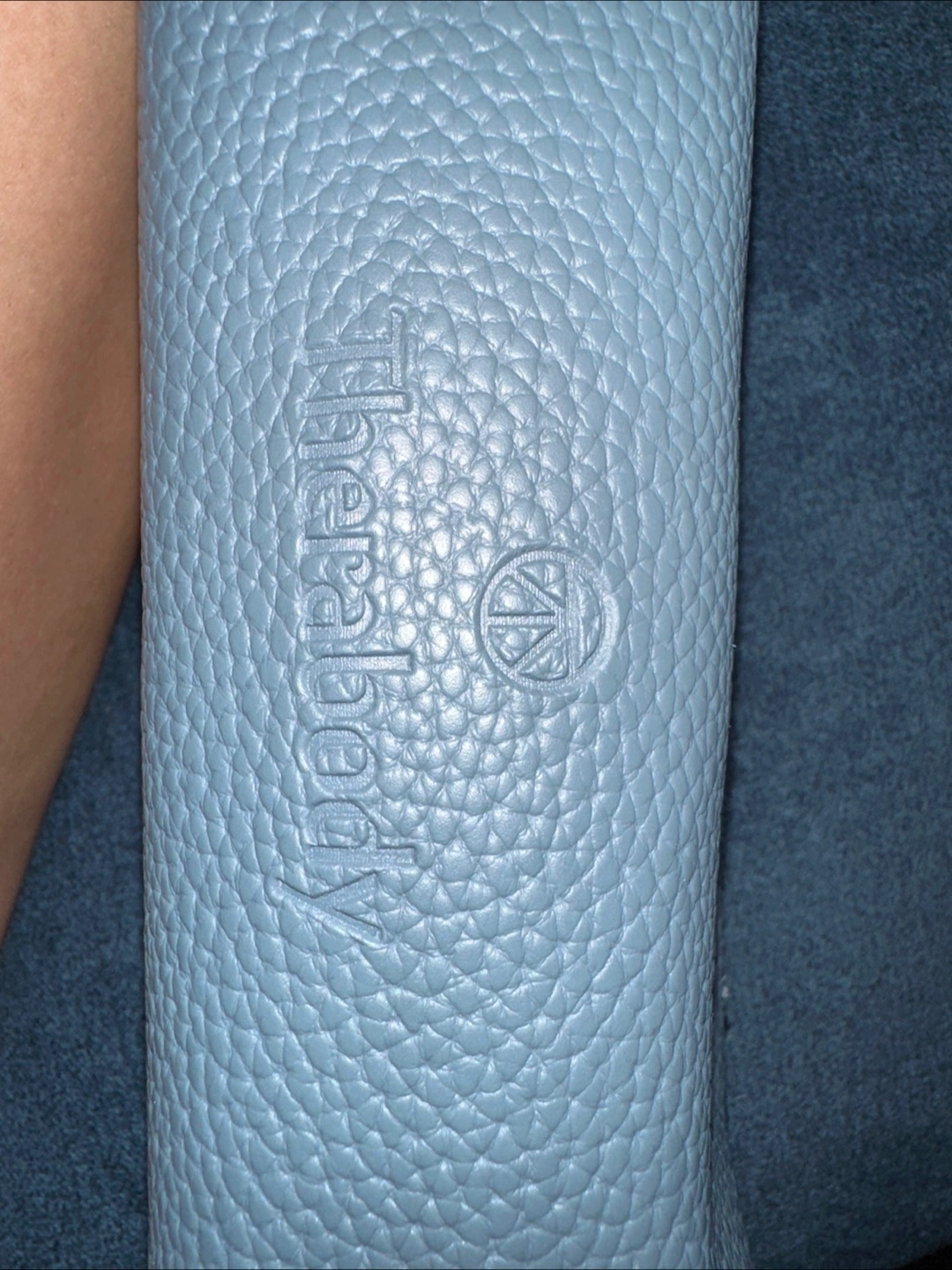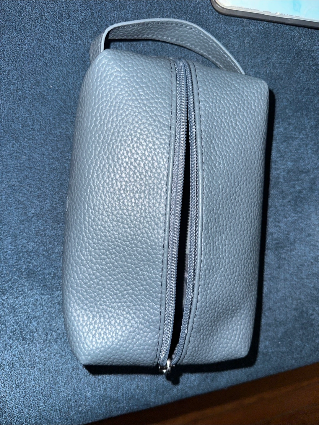 Selling a blueish gray Therabody toiletry bag. It's in great condition and perfect for travel or storing your essentials! The bag features a textured exterior and a zippered closure to keep your items secure. Dimensions are approximately 8x5x2.5