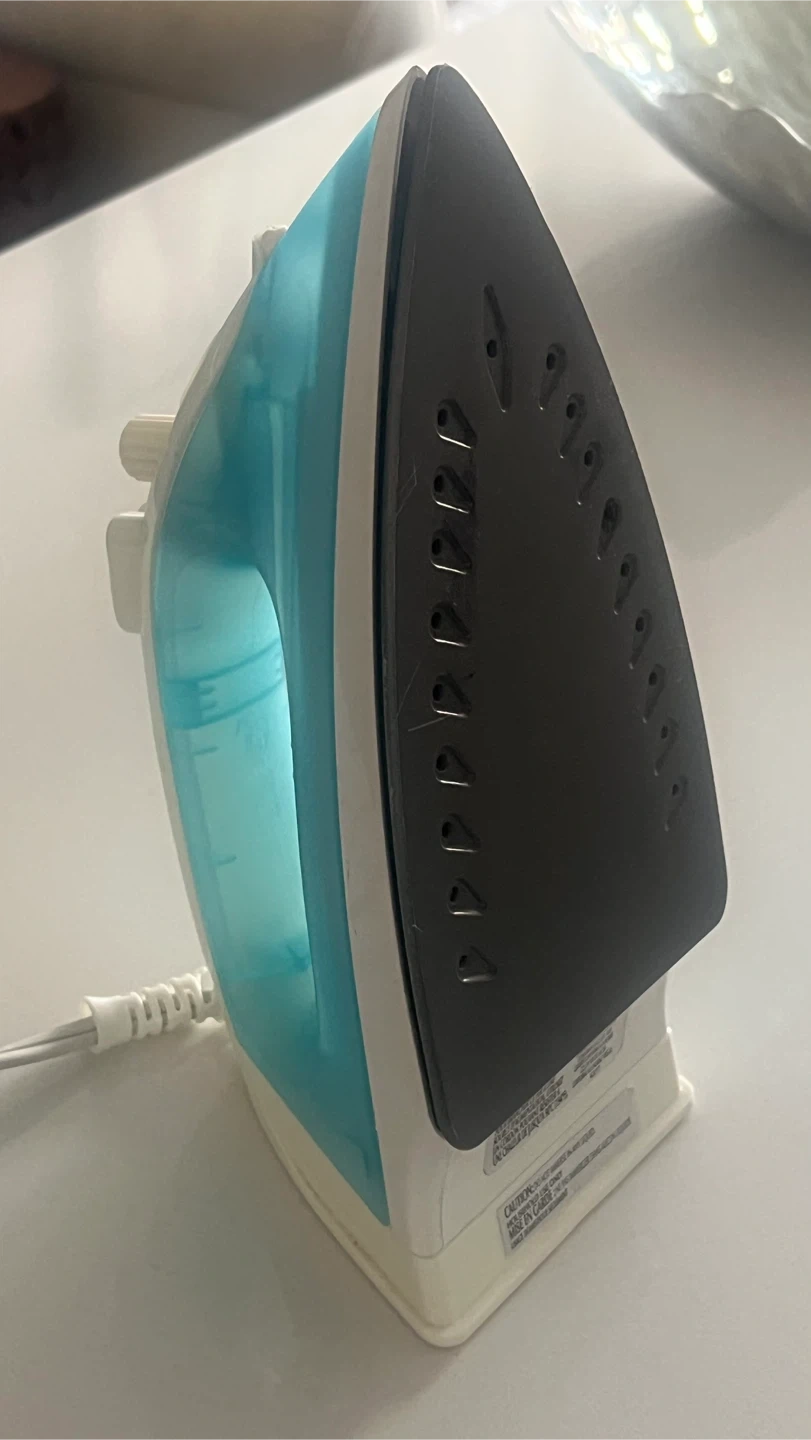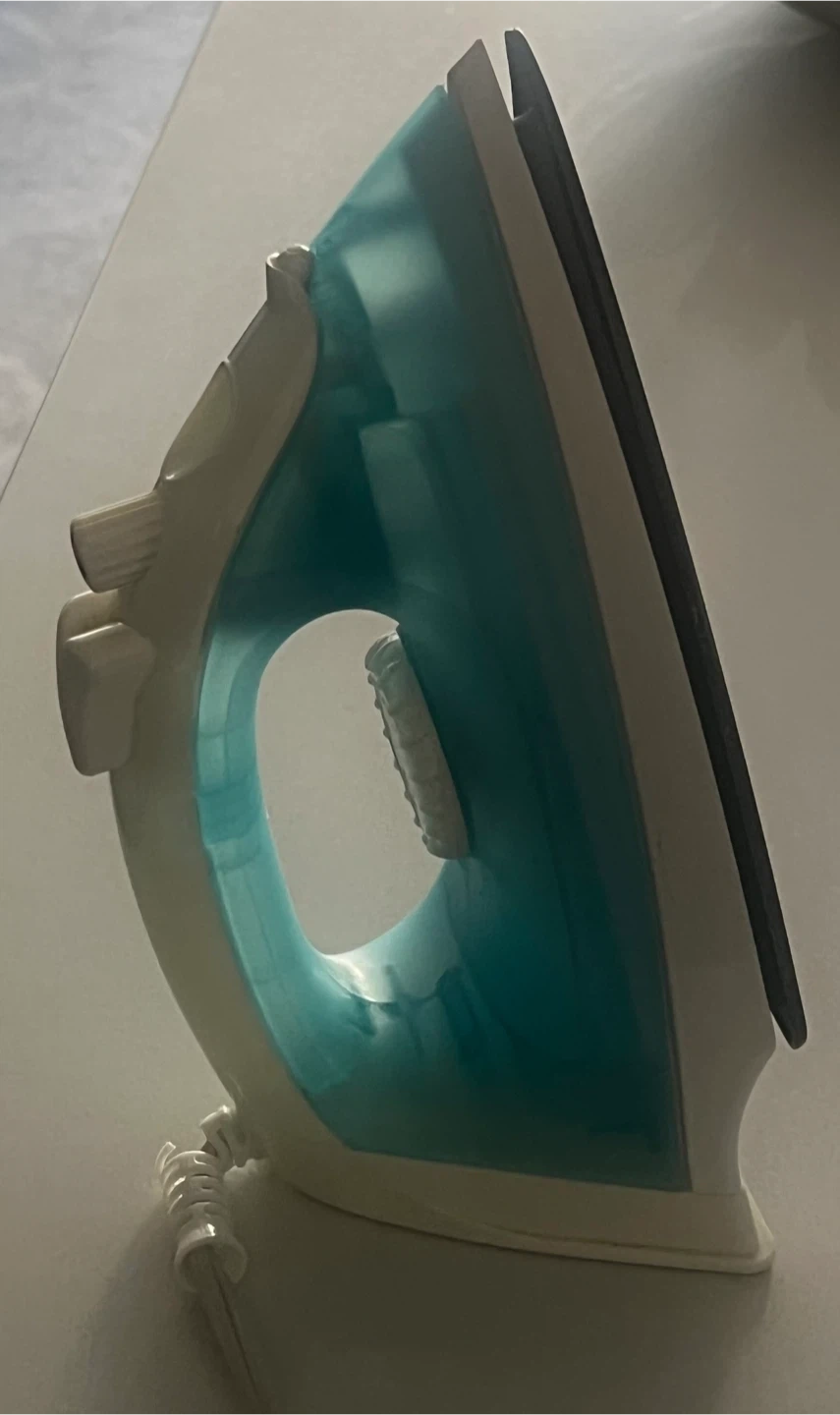 This is a home steam iron with adjustable temperature settings. It features a non-stick soleplate and a water reservoir for steam function. Great for removing wrinkles from various fabrics!