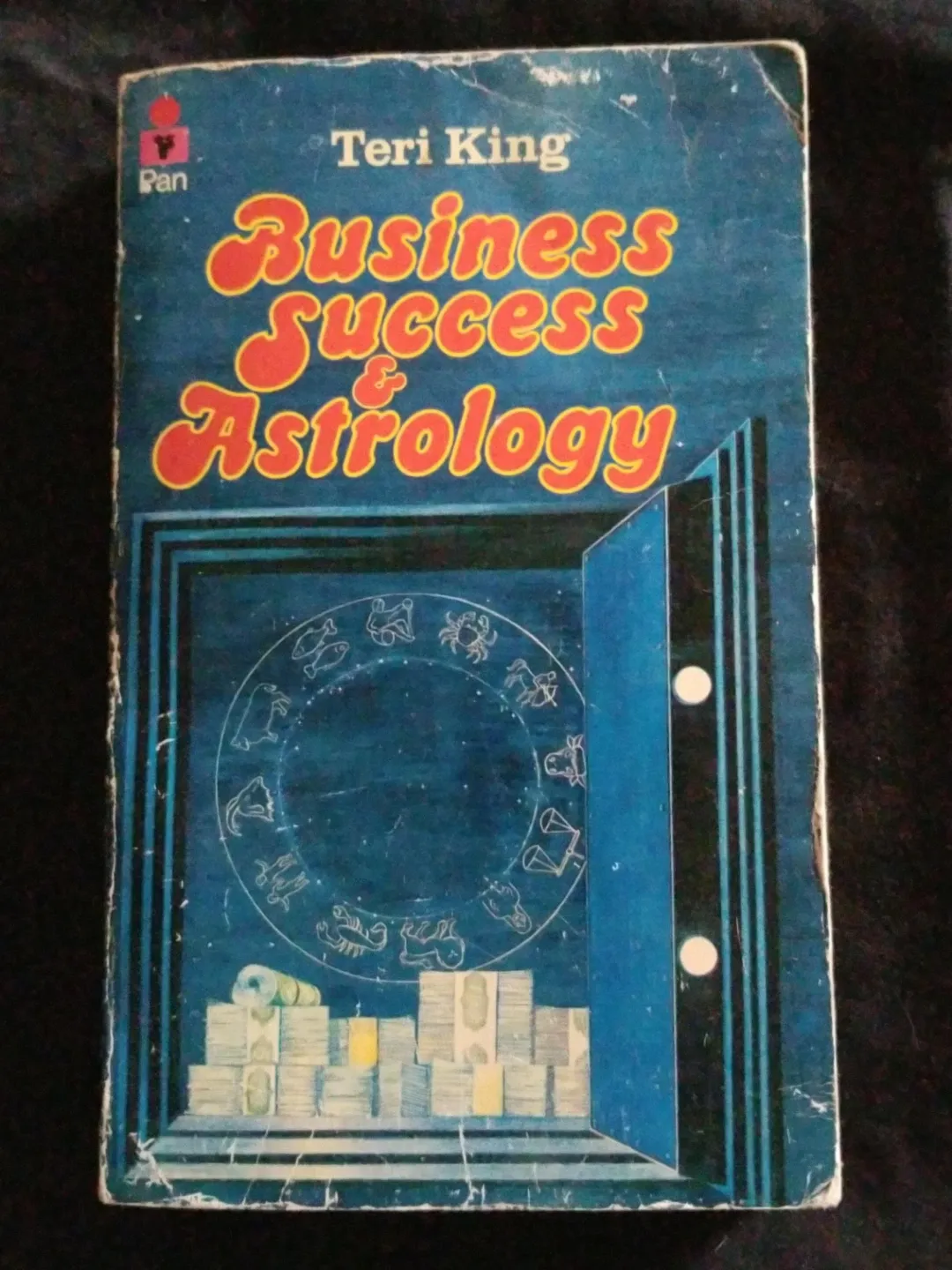 This book explores the connection between business success and astrology. It's written by Teri King and published by Pan. It features astrological symbols and imagery related to finance.