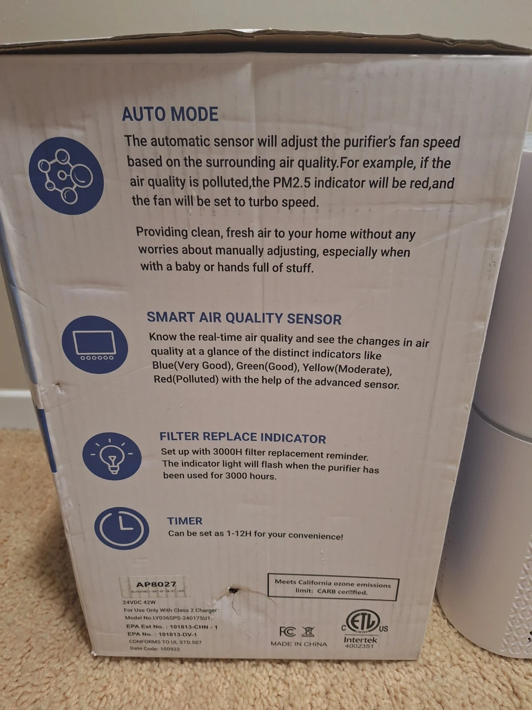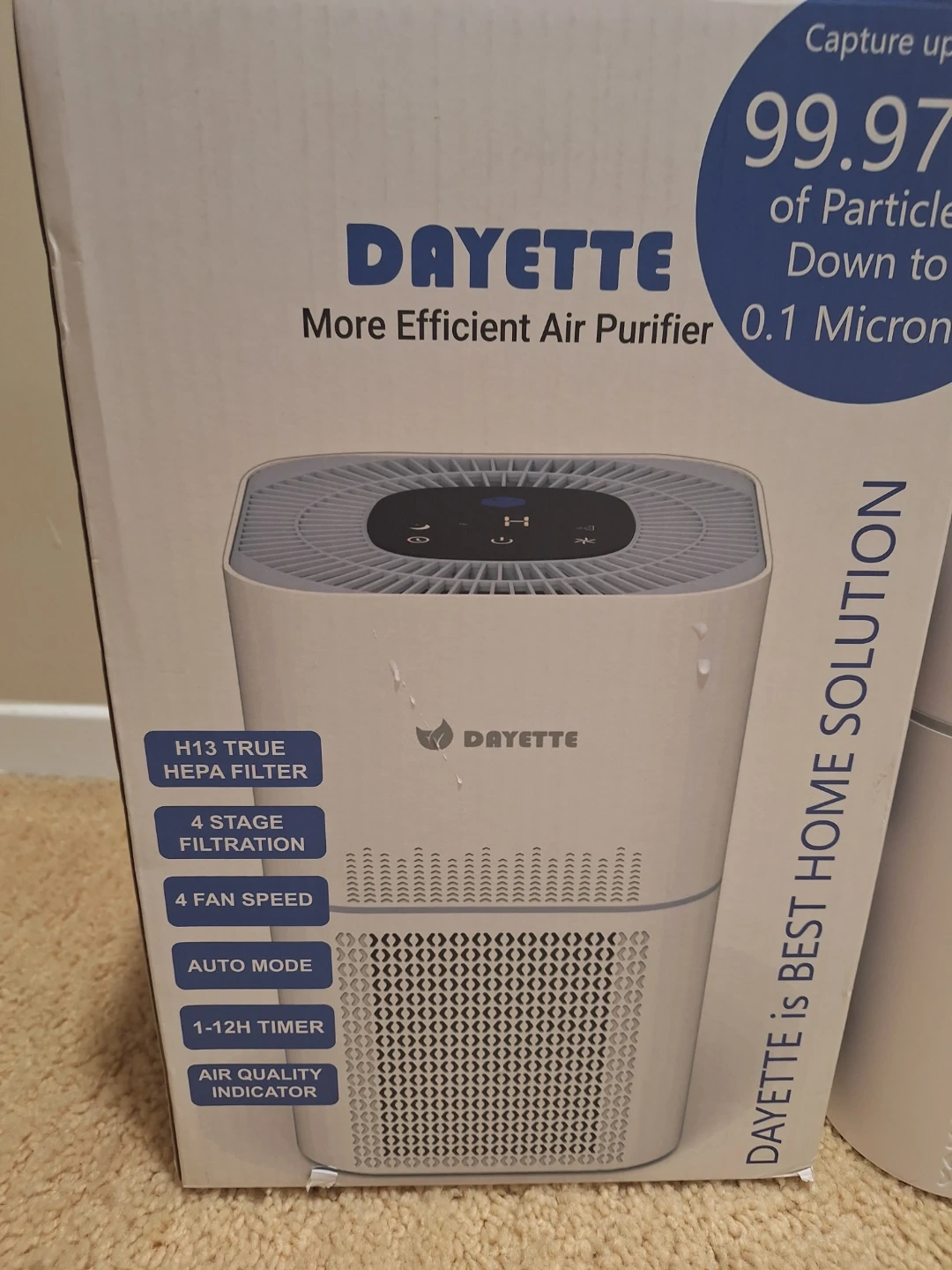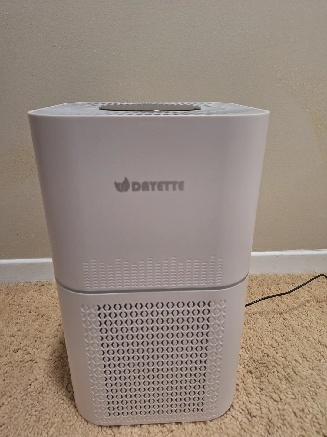DAYETTE air purifier with HEPA FILTER and 4 STAGE FILTRATION, AUTO MODE, 4 FAN SPEED, and a 1-12Hour TIMER. It captures up to 99.97% of Particles Down to 0.1 Microns.