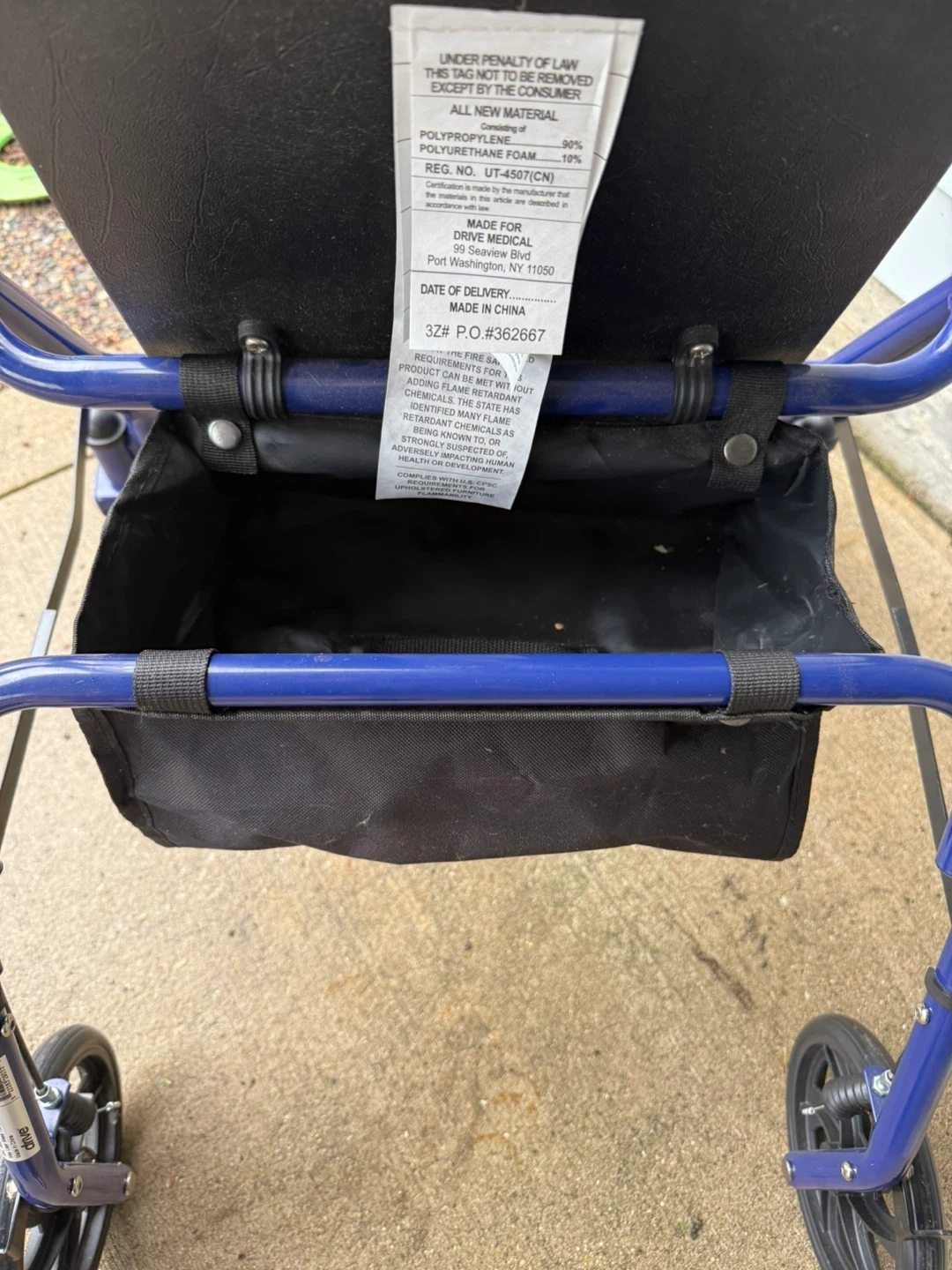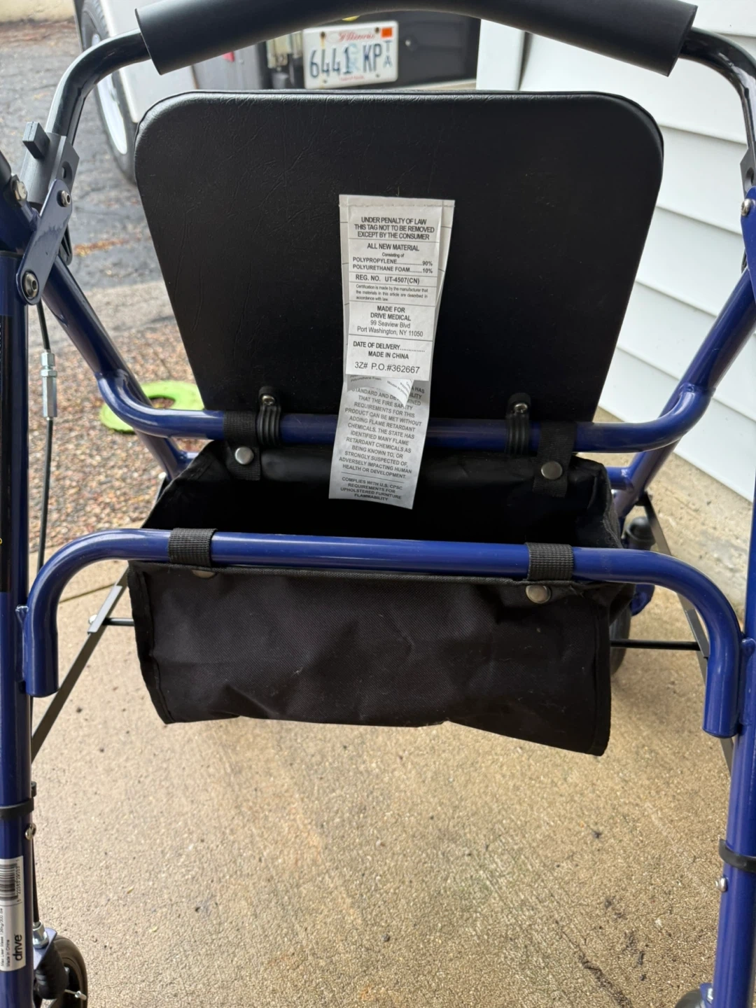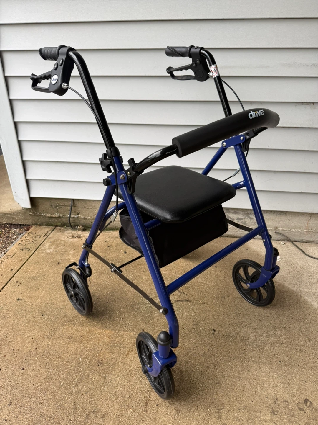 This Drive Medical walker offers a sturdy frame for mobility support. It includes a comfortable seat and a storage bag underneath. Brakes are included for added safety. It's a helpful aid for navigating daily life!