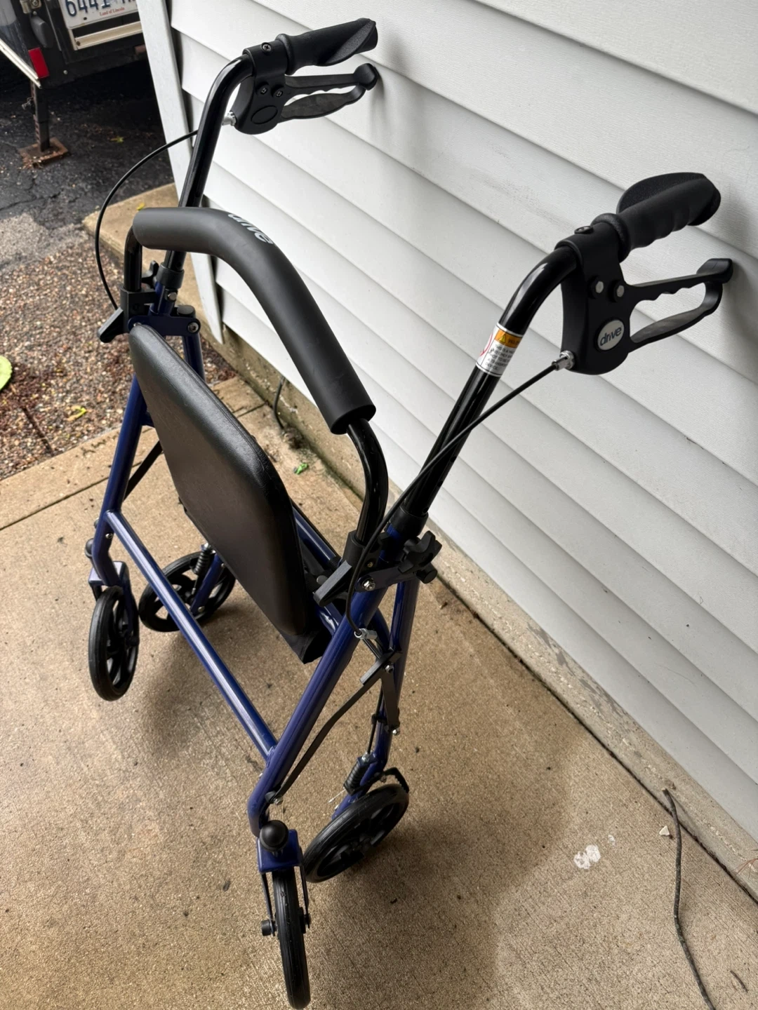 Bought for a surgery and never needed to use it. So it’s New out of box. Has hand breaks , adjustable handles for height. Seat with storage underneath and 6” wheels for stability.