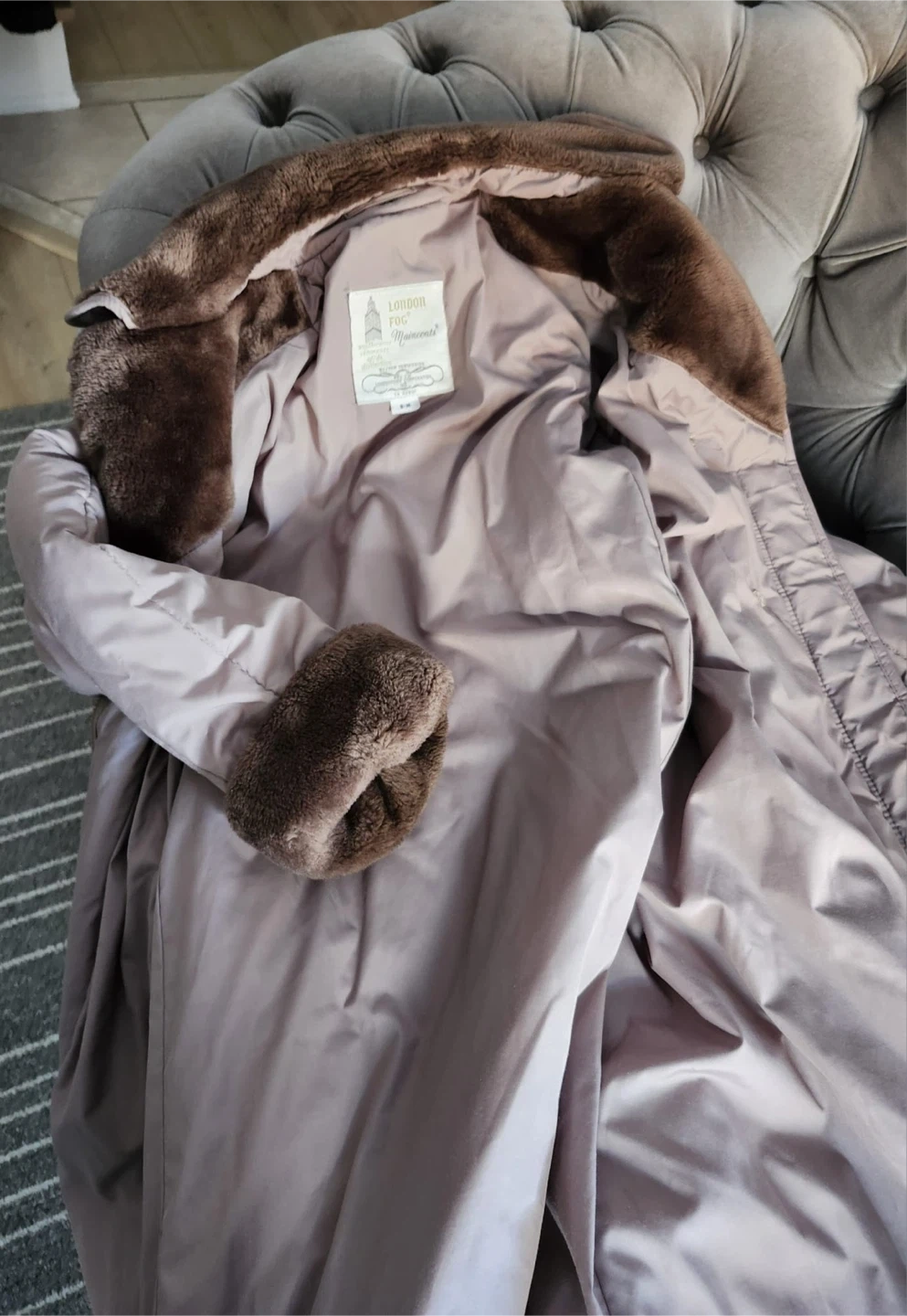 Stay warm and stylish in this long quilted puffer coat from London Fog. It features a cozy faux fur lining and trim for extra insulation. This coat is perfect for chilly weather!