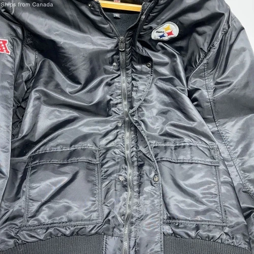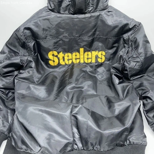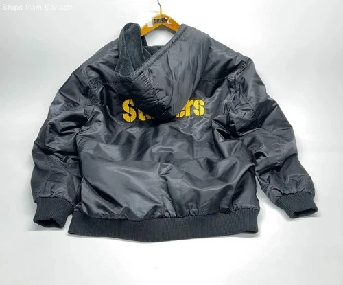 Show your Steelers pride with this NFL Pro Line Black Hooded Jacket. Designed for comfort and durability, it's perfect for game days or casual wear. Features the iconic team logo. Officially licensed by the NFL. VERY GOOD CONDITION. WASHED, DRIED, READY TO GO.
