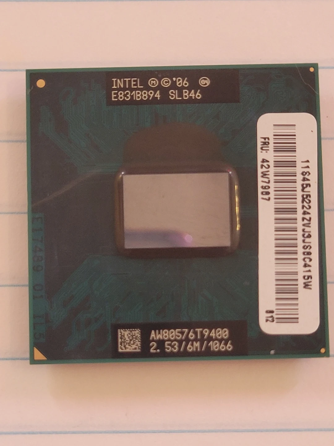 This is an Intel CPU processor, model SLB46. It's an E831B894 model manufactured in '06. Specs: AW80576T9400, 2.53/6M/1866.