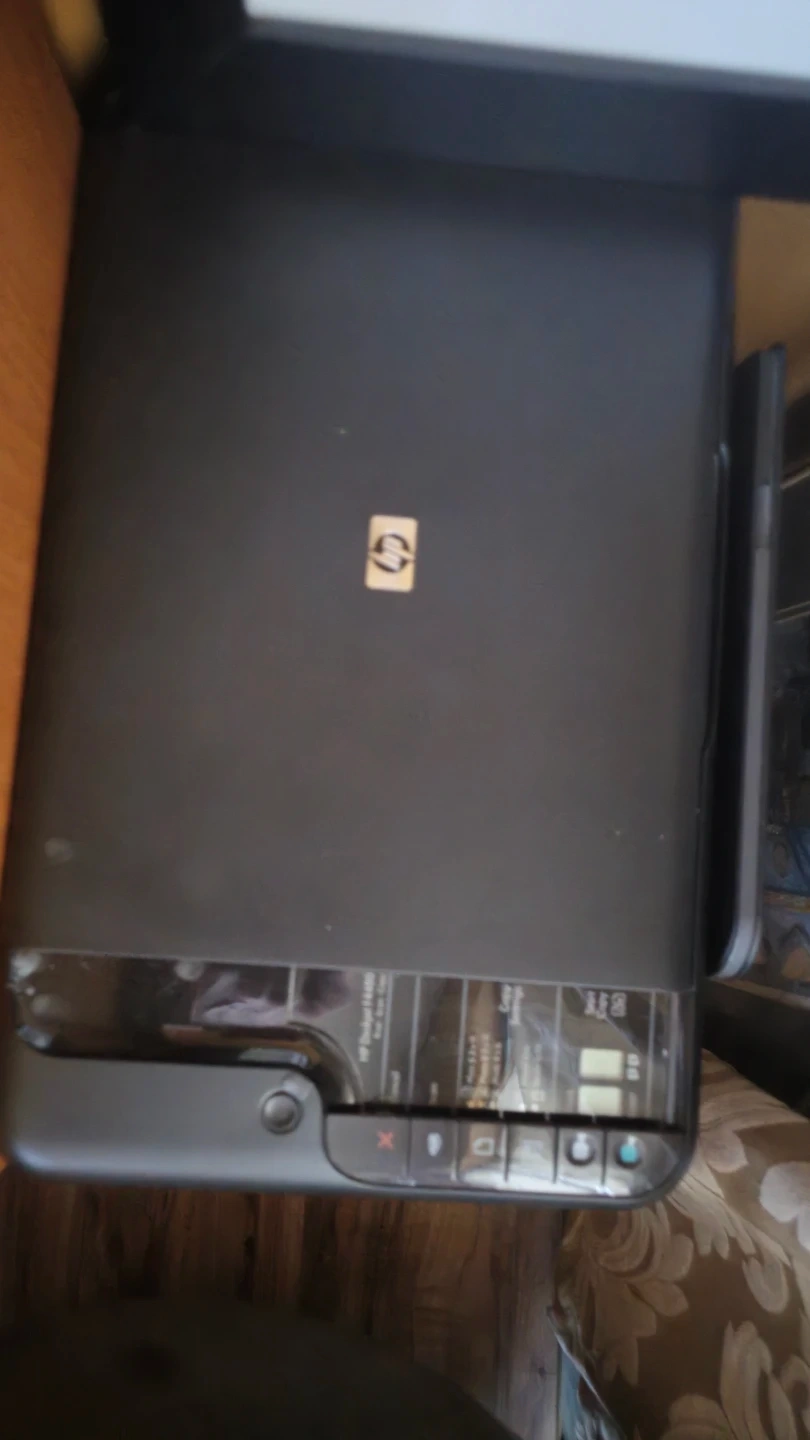 This is an HP DeskJet 1480 All-in-One printer. It's black and made of plastic. The printer's control panel has buttons for power, cancel, and other functions. Giving it for free due to absence of cables.