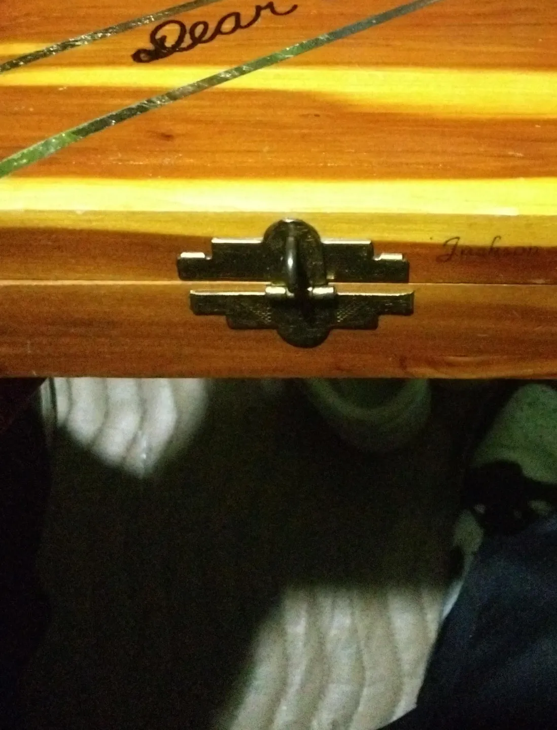 Wooden keepsake box featuring a latch closure. "Dear Jackson" is elegantly engraved on the lid. Made from natural wood. This box is great for storing small treasures!