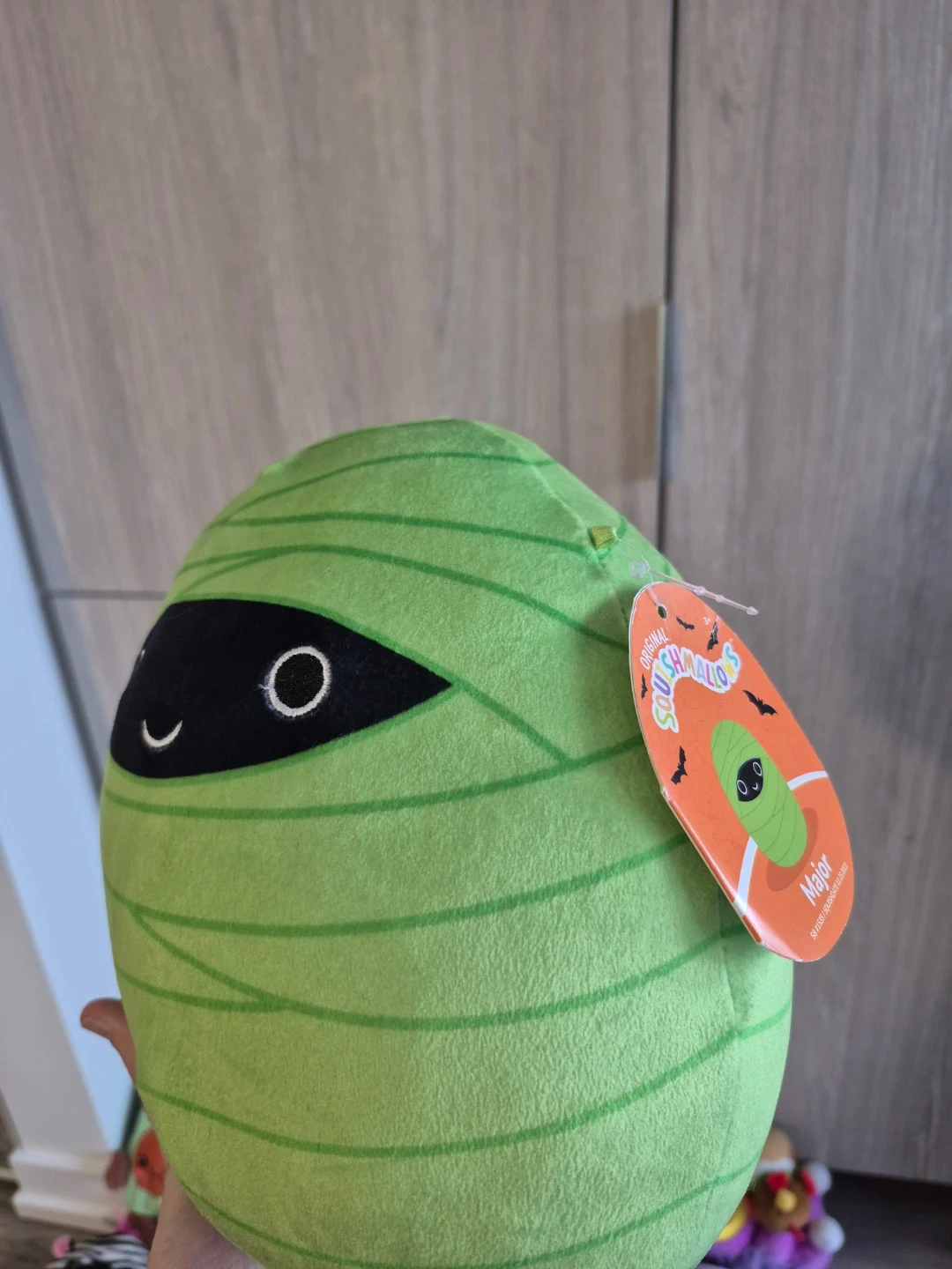 This is a Squishmallows Major Mummy plush toy. It's a soft and cuddly stuffed animal perfect for snuggles. It's great for kids of all ages!