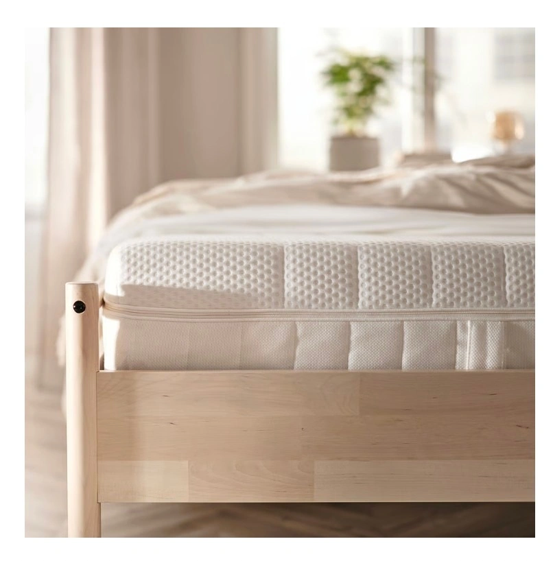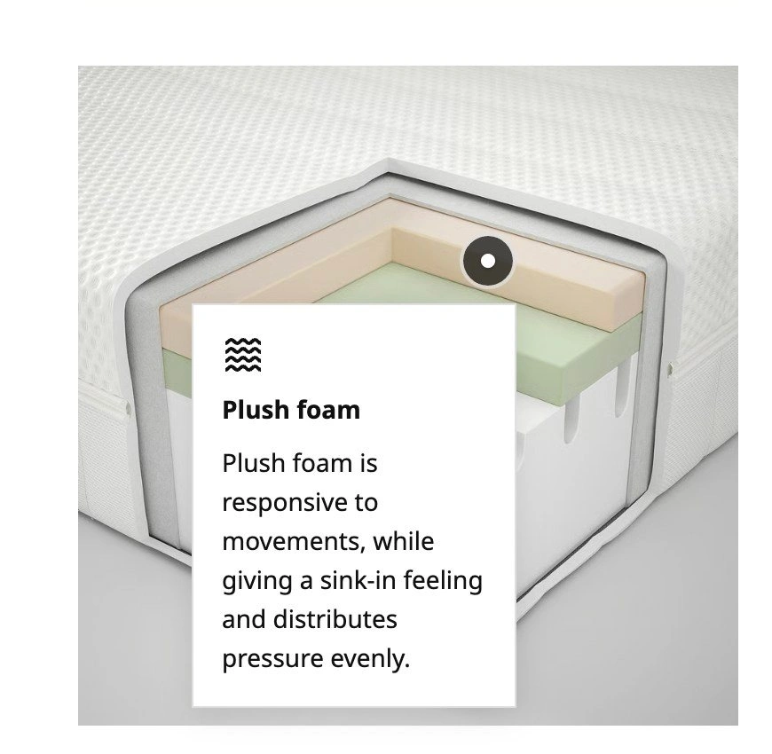 10Purchased one month ago and used for only a few nights using waterproof mattress protectors. Like new condition! I went with a firmer mattress instead from another brand. I would return it to IKEA but they only issue store credit when exchanged for another mattress. Trying my luck here instead. Retails new for $350. Pick up in Bedstuy at Madison St and Nostrand Ave. I still have the plastic encasing available for transport. I can help bring it to the curb, too. I live at garden level. A medium-firm 7⅞ in high foam mattress with 3 layers of comfort and support. A washable cover and a top layer of plush foam combined with memory foam and comfort zones for even body weight distribution.