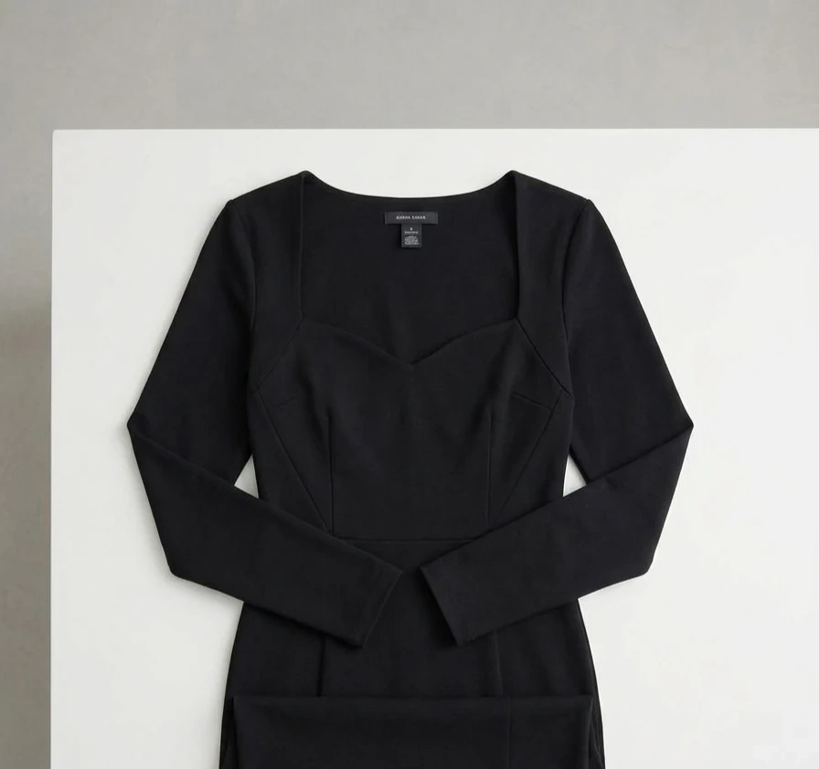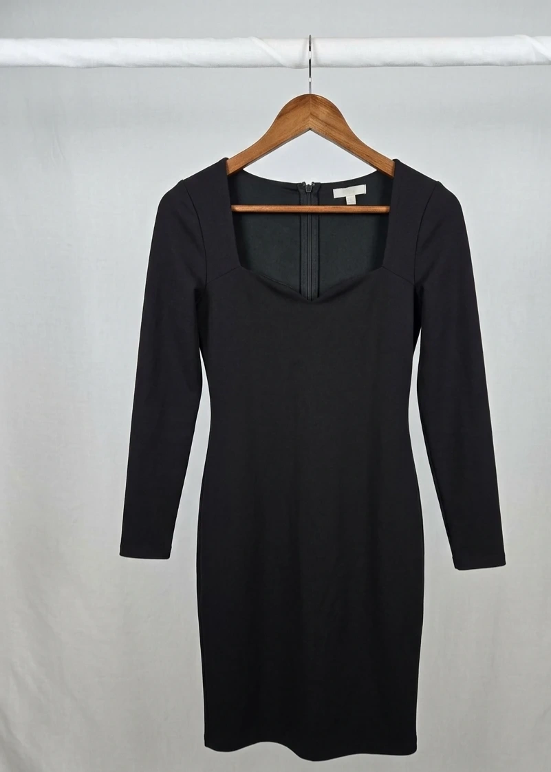 Black Long Sleeve Sweetheart Neckline Dress. Size L