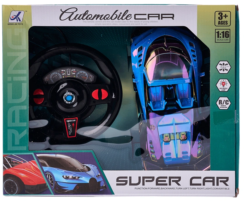 The Super Car R/C Toy delivers sleek styling and exciting remote-control action in a detailed 1:16 scale emulation model. Designed to mimic the look of high-performance supercars, it offers smooth forward, reverse, and turning movement for engaging play. The realistic body design makes it a standout on shelves and during playtime. Ideal for kids, collectors, and gift displays, this R/C car is a strong seller in toy aisles.