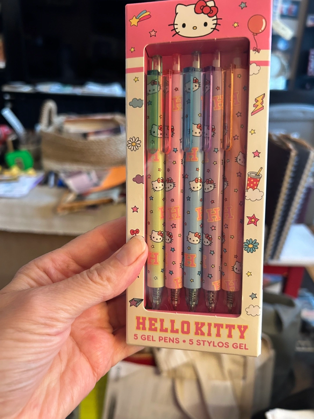 These Hello Kitty gel pens are brand new and still in the box! The set includes 5 pens with cute Hello Kitty designs. Perfect for adding a touch of fun to your writing or drawing