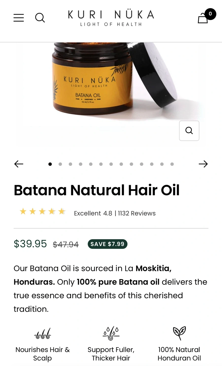 I'm selling a brand new Kuri Nuka Light of Health Batana Oil. It's pure, unrefined, and raw! The size is 110 ml / 3.7 fl oz. How to Use: Scoop a small amount with your finger and melt it in your palm. Apply to hair and massage thoroughly. Leave in for at least 30 minutes before rinsing out. Can also be used as a leave-in treatment overnight