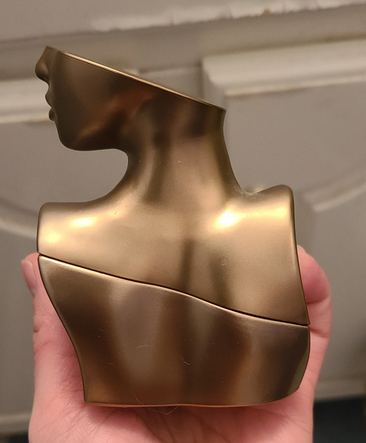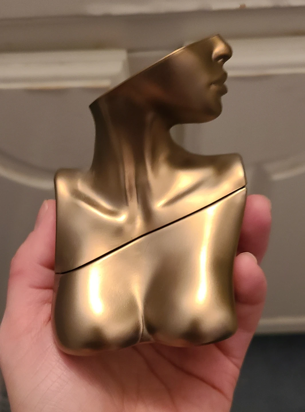 Billie Eilish Eau de Parfum spray is a 1.0 fl oz (30 mL) fragrance. The bottle's design is a gold bust. Normally retails for $80.