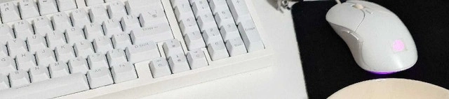 Selling a pure white mechanical keyboard with responsive red switches. It has a sleek, minimalist design and is in used-good condition. I'm selling it because I've upgraded to a different model, but it's been well-maintained and is ready for a new home. This comes with a silent white RGB mouse for free. If the ad is still up, the keyboard is still available.