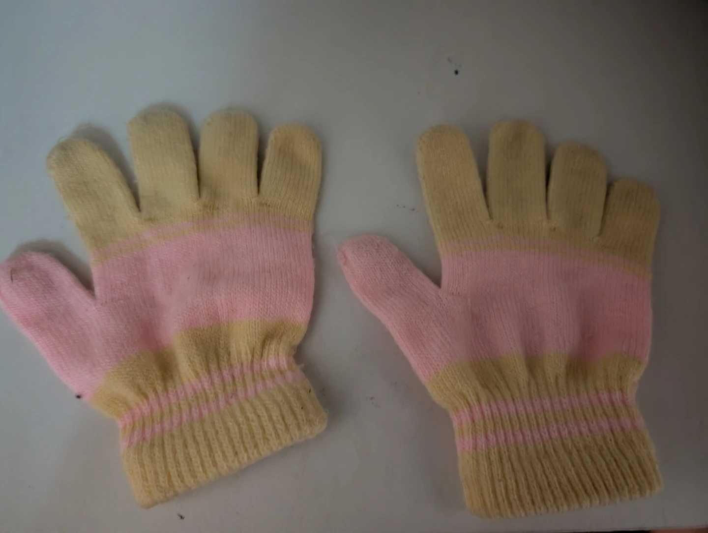 Pink and Yellow Striped Knit Gloves🏆4-8y