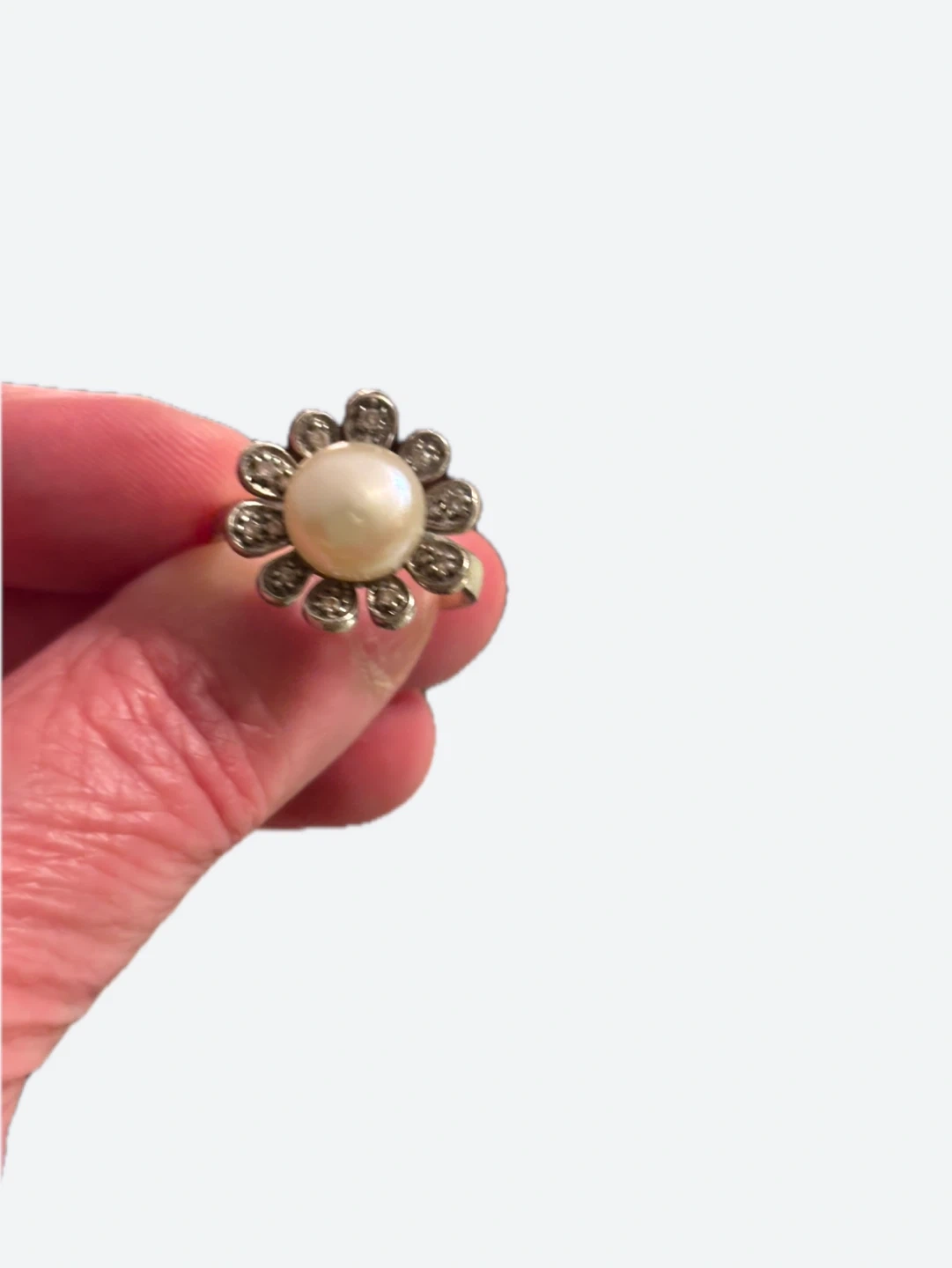 Vintage Pearl and Rhinestone Flower Rings Sterling silver