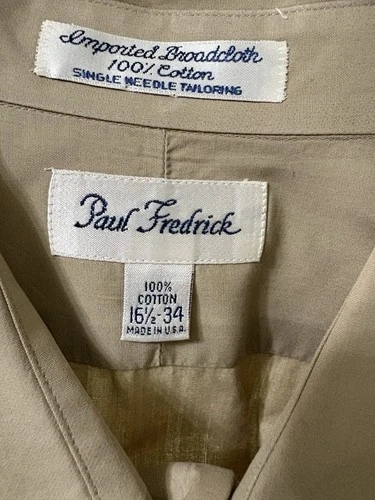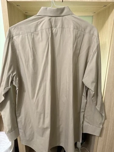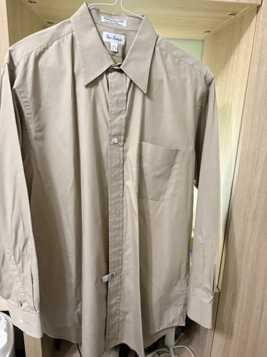 This Paul Frederick Beige Long-Sleeve Dress Shirt is a classic and versatile piece suitable for both casual and business occasions. Made from 100% cotton with a solid pattern and collared neckline, this shirt features a button closure and barrel cuff style. The beige color and regular fit make it a timeless and stylish choice for men looking to add a touch of sophistication to their wardrobe. Easy to care for with machine washable fabric.