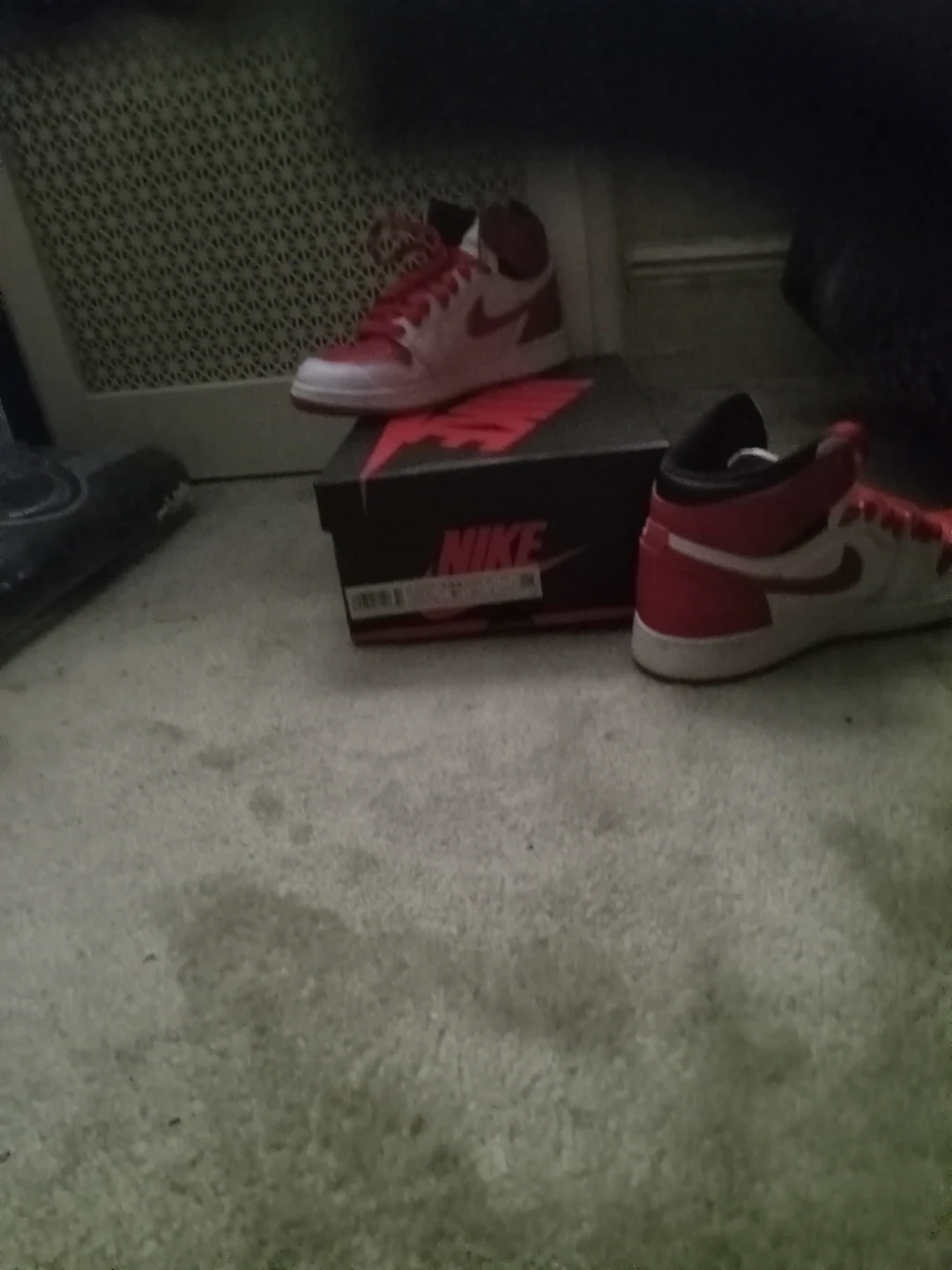 These are the iconic Nike Air Jordan 1 High OG 85's sneakers in the classic Chicago colorway. They feature a leather construction with white and red accents. Includes original Nike box. Available in kids size 5 Y.