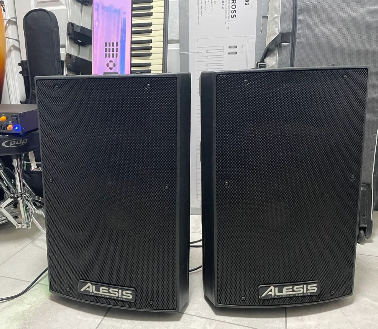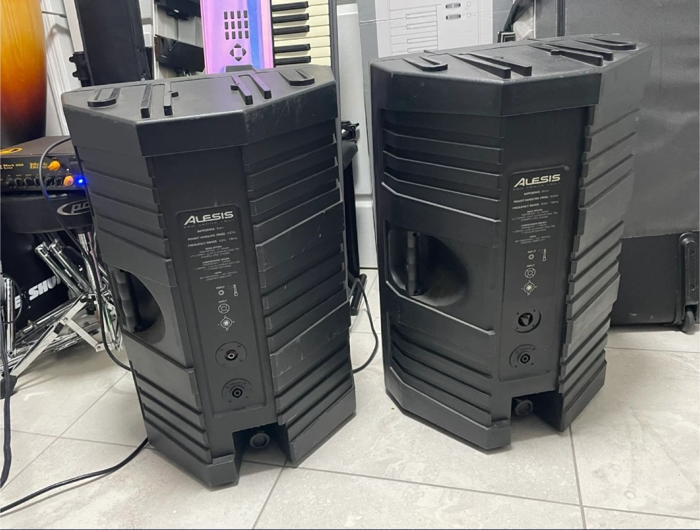 This is a pair of Alesis active 2-way PA speakers. They're black and feature Speakon connectors. Great for live sound or DJ applications!