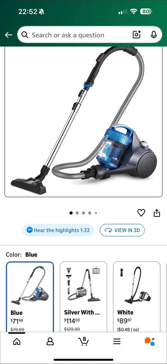 Selling a Eureka lightweight vacuum cleaner in good condition! It's blue and silver. Perfect for quick cleanups around the house. In great working condition have just few cosmetic scratches. Moving sale