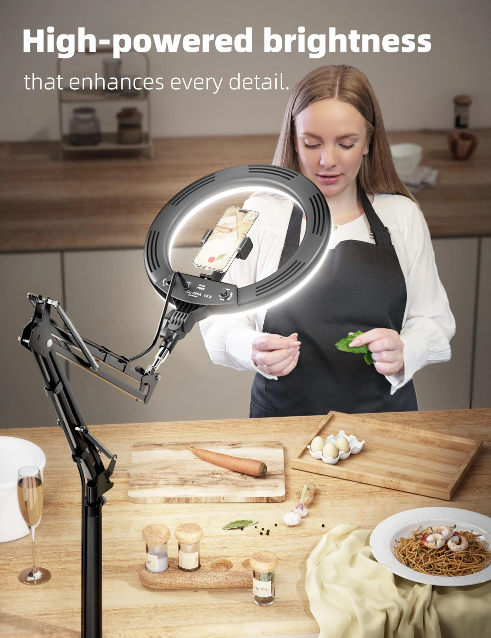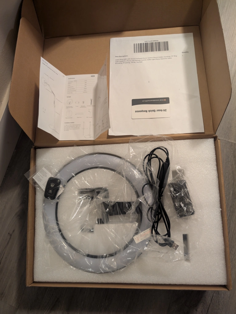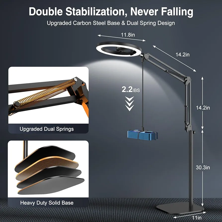 BRAND NEW !!! Ring Light with Stand and Phone Holder for Desk, " Selfie Light for Phone Laptop Computer, Overhead Phone Camera Mount Tripod with Remote for Video Recording/Live Streaming/Cooking/YouTube