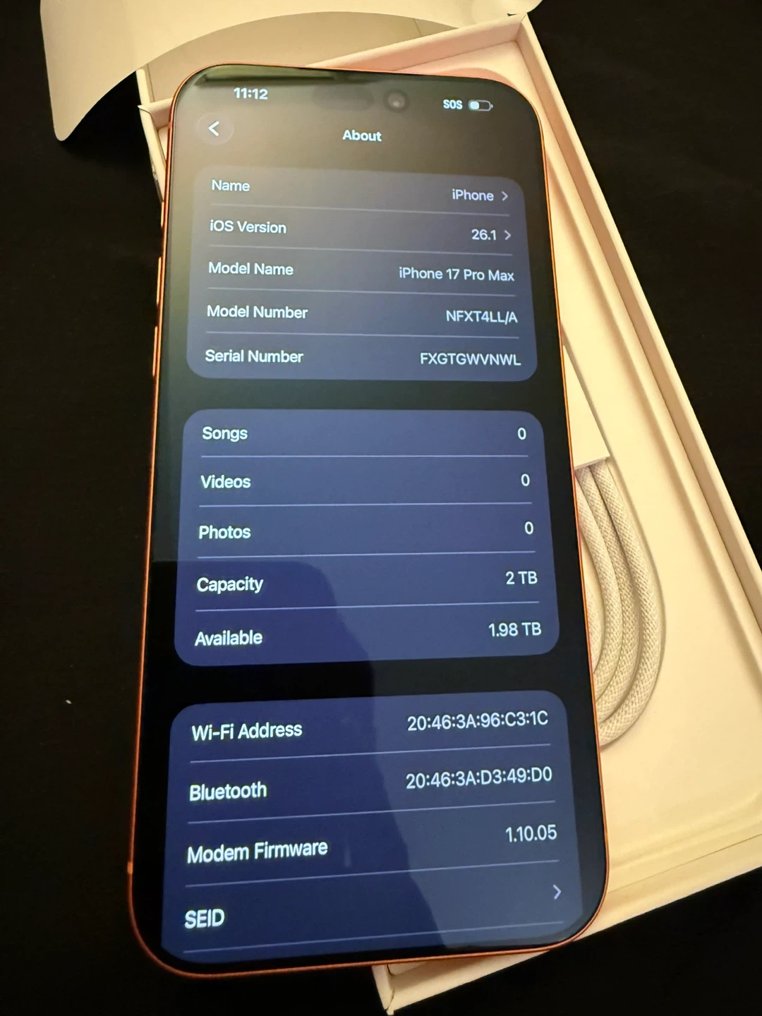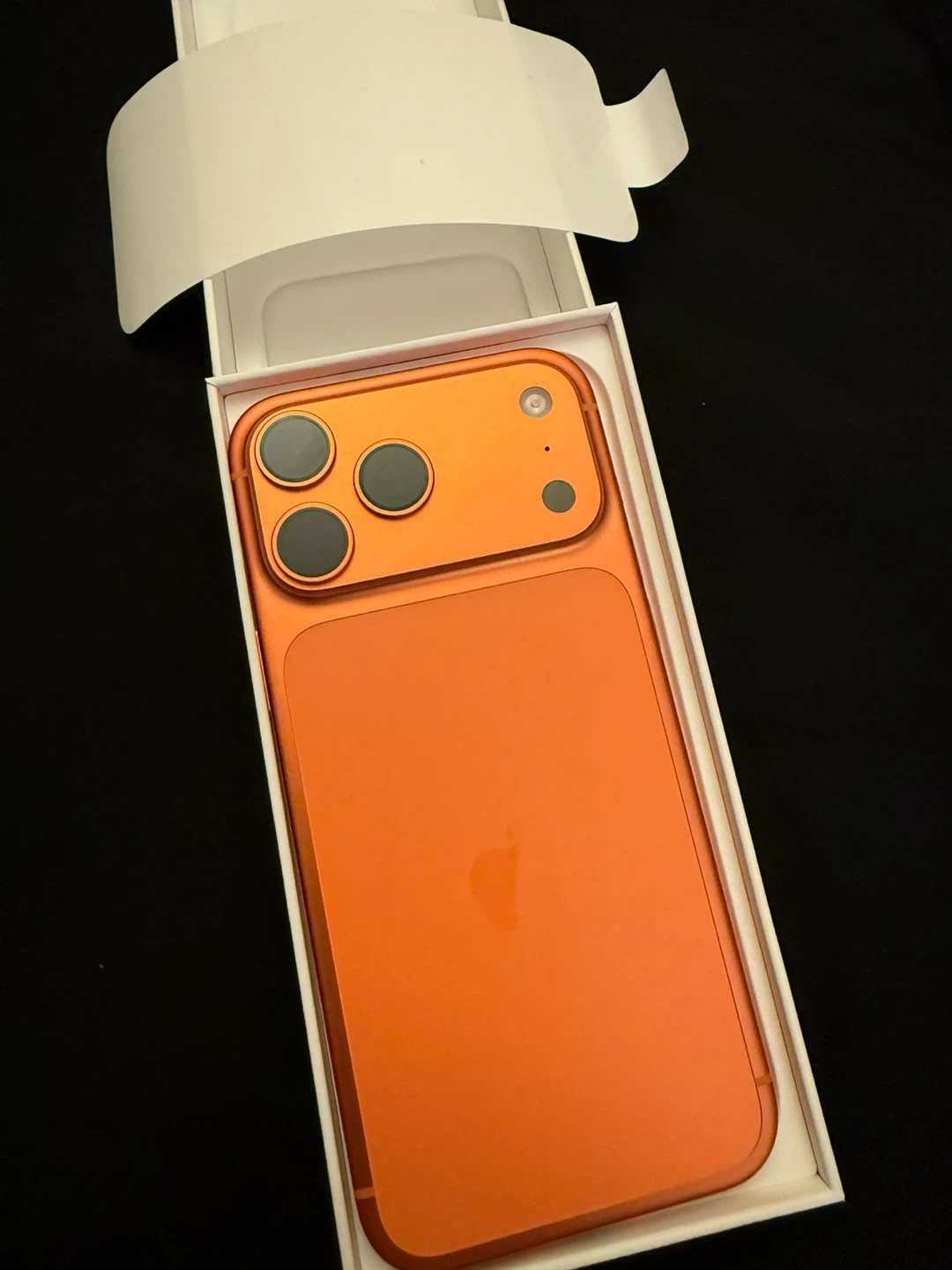 Unlocked Apple iPhone 17 Pro Max in Orange with 2TB capacity with original box and charging cable. Never used