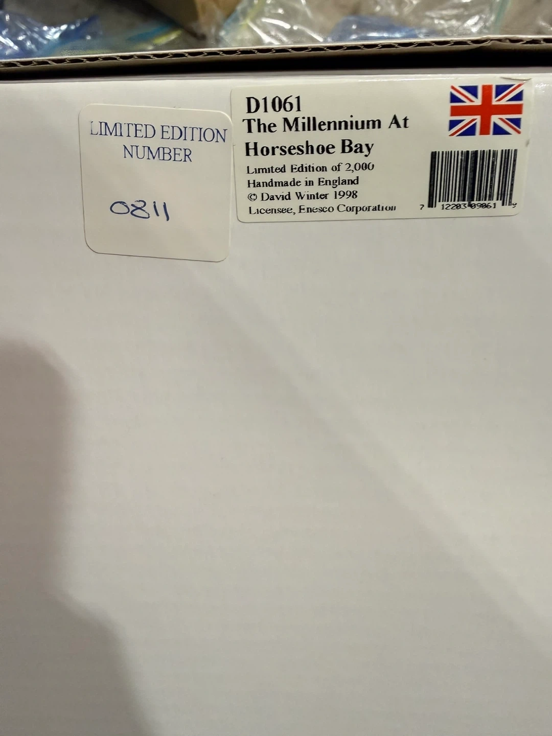 This is a David Winter Cottages "The Millennium At Horseshoe Bay" limited edition sculpture. It's number 0811 out of 2000. Handmade in England by Licensee, Enesco Corporation. This piece was copyrighted in 1998.