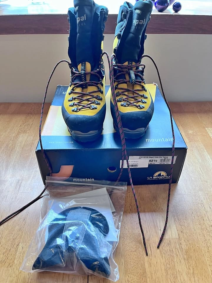 65La Sportiva Goretex-based outdoor/mountaineering boots, size EU 42.5. Crampon compatible! Will keep you glued to terrain. New in box, great deal--retails for $649-$699.