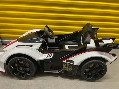 25Selling a Lamborghini ride-on car for kids! It's black and white and looks super cool. Has added reflective pinstripes to make the car more visible in low light conditions (can be removed). Has a parent remote which allows the car to be controlled like a giant R/C car. Wasnt used much, my toddler outgrew it. Perfect for your little one to cruise around in style. •Working Headlights and Tailights •RGB underlights •Radio/mp3 player. •Parent Remote ( allows the car to be controlled by handheld remote included) •Remote has kill switch to shut off car for safety •High/Low speed + Rocking mode
