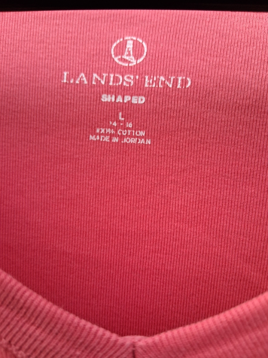 Lands' End long sleeve shirt in a coral color. It's a women's size L (14-16) and is made of 100% cotton. It's in great condition and ready for a new home!