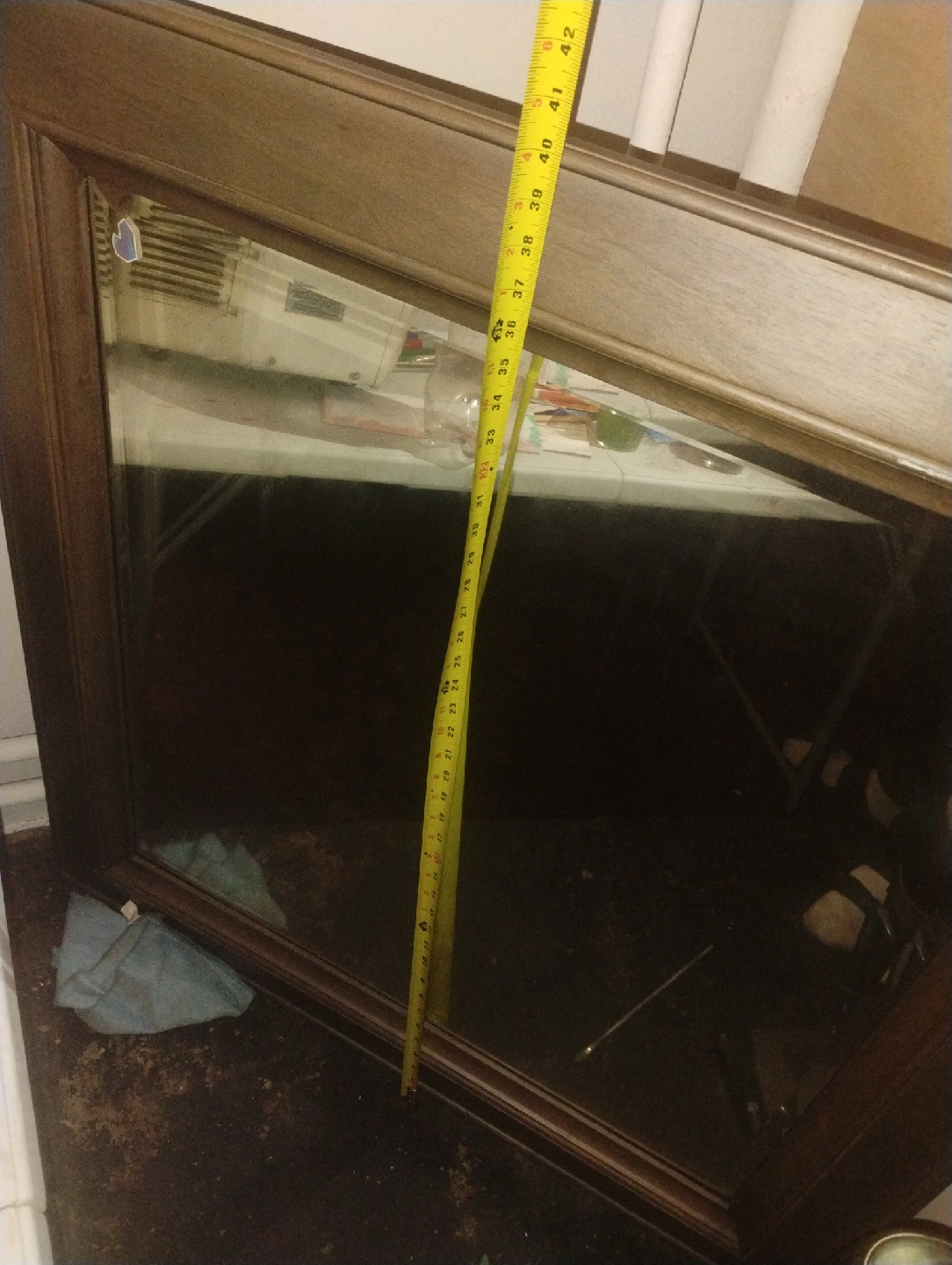 Selling a large mirror with a brown wooden frame. It's in good condition and would look great in any room. The mirror measures approximately 42 inches in height and width. Perfect for adding a touch of elegance to your space