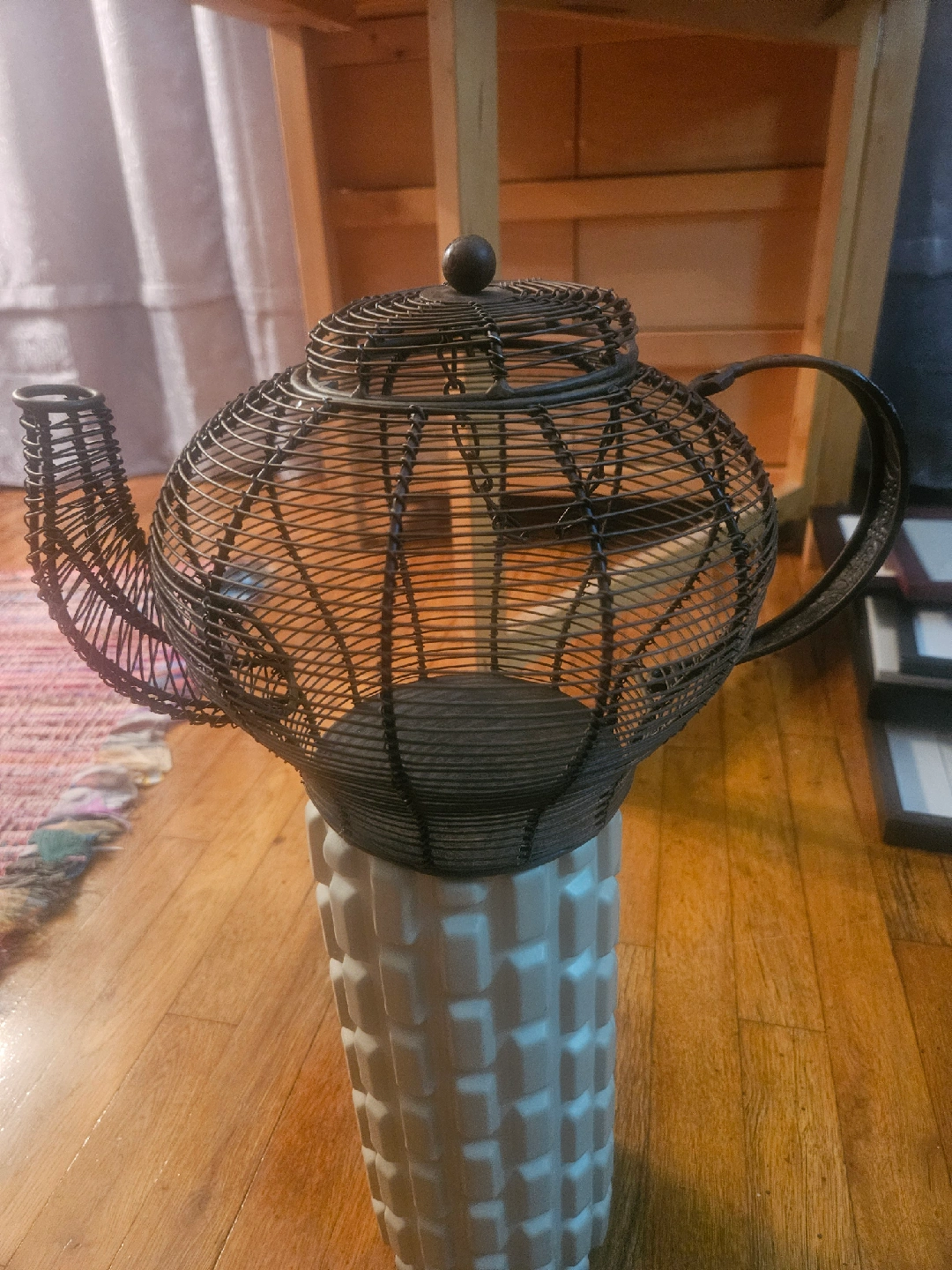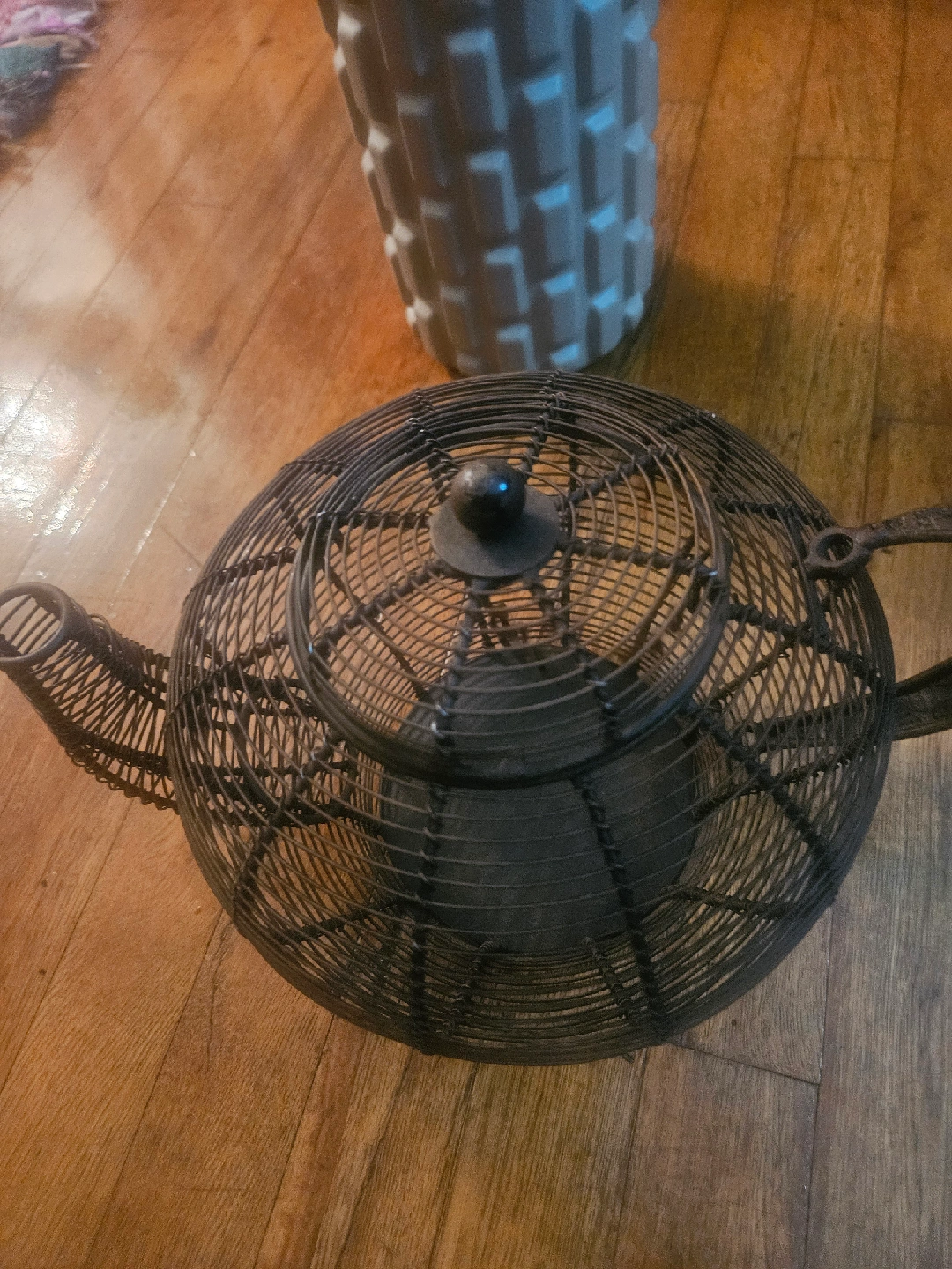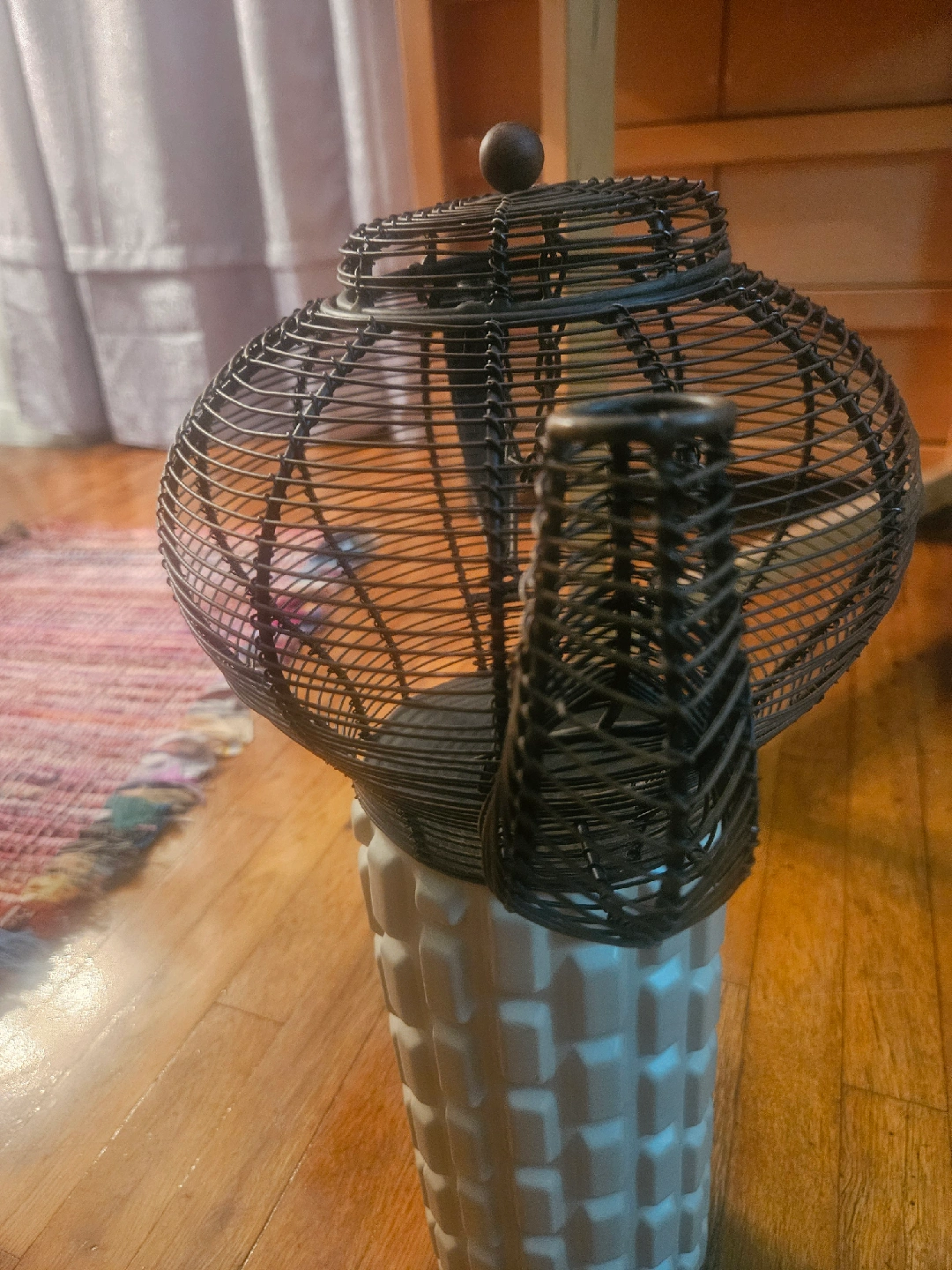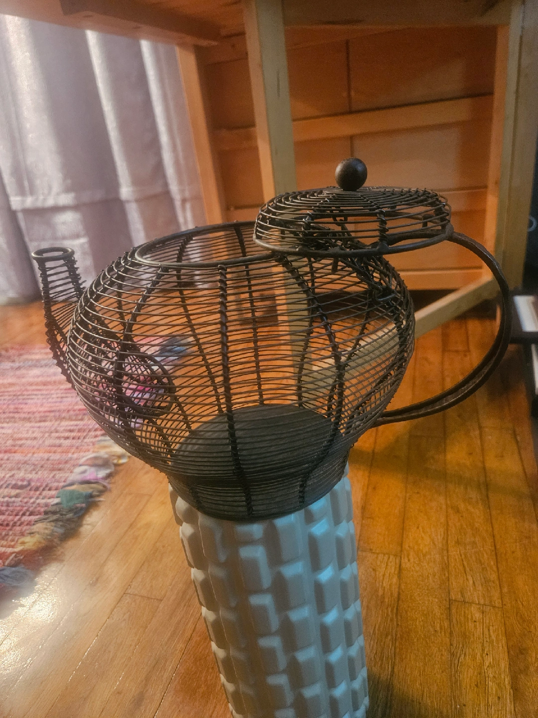 antique, hand made, franch brass tone basket,hand made with tine wire.