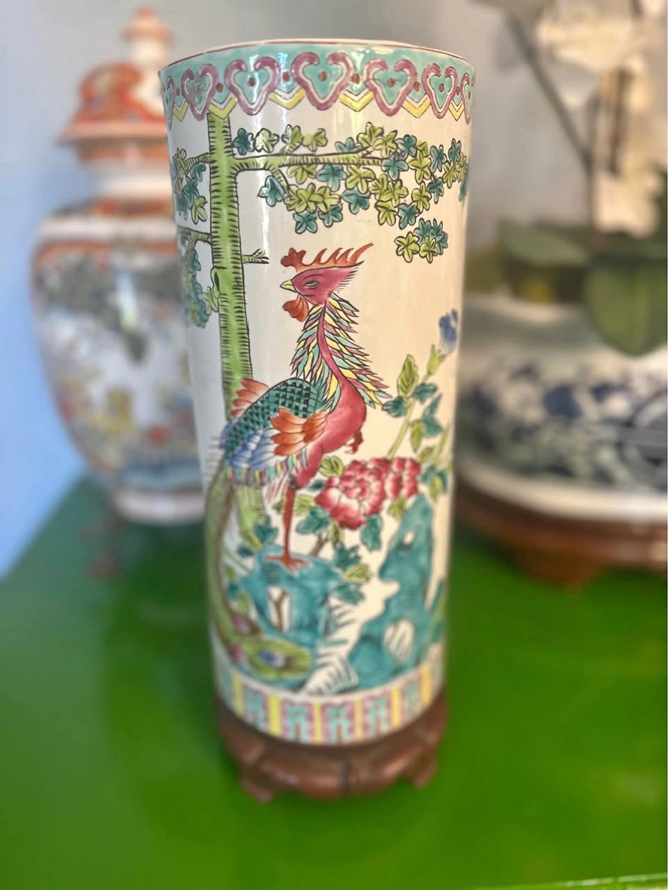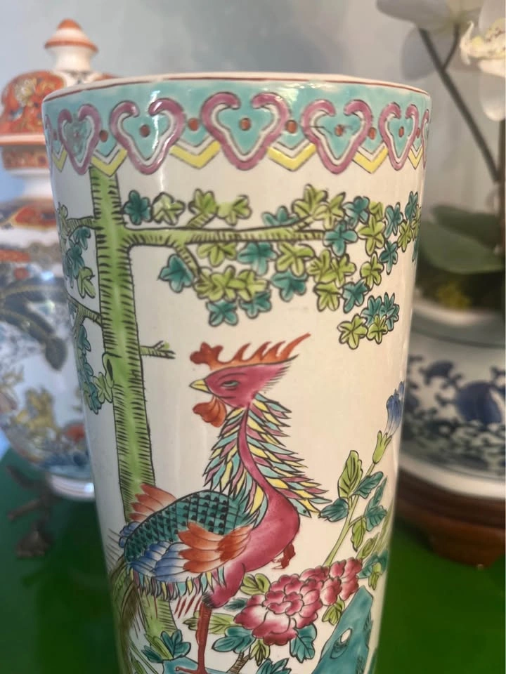 15Large Scroll Vase. China. Early 20th century, Birds and cherry blossoms. Very good condition. Height: 28.05. Diameter 12.05. Signature below.