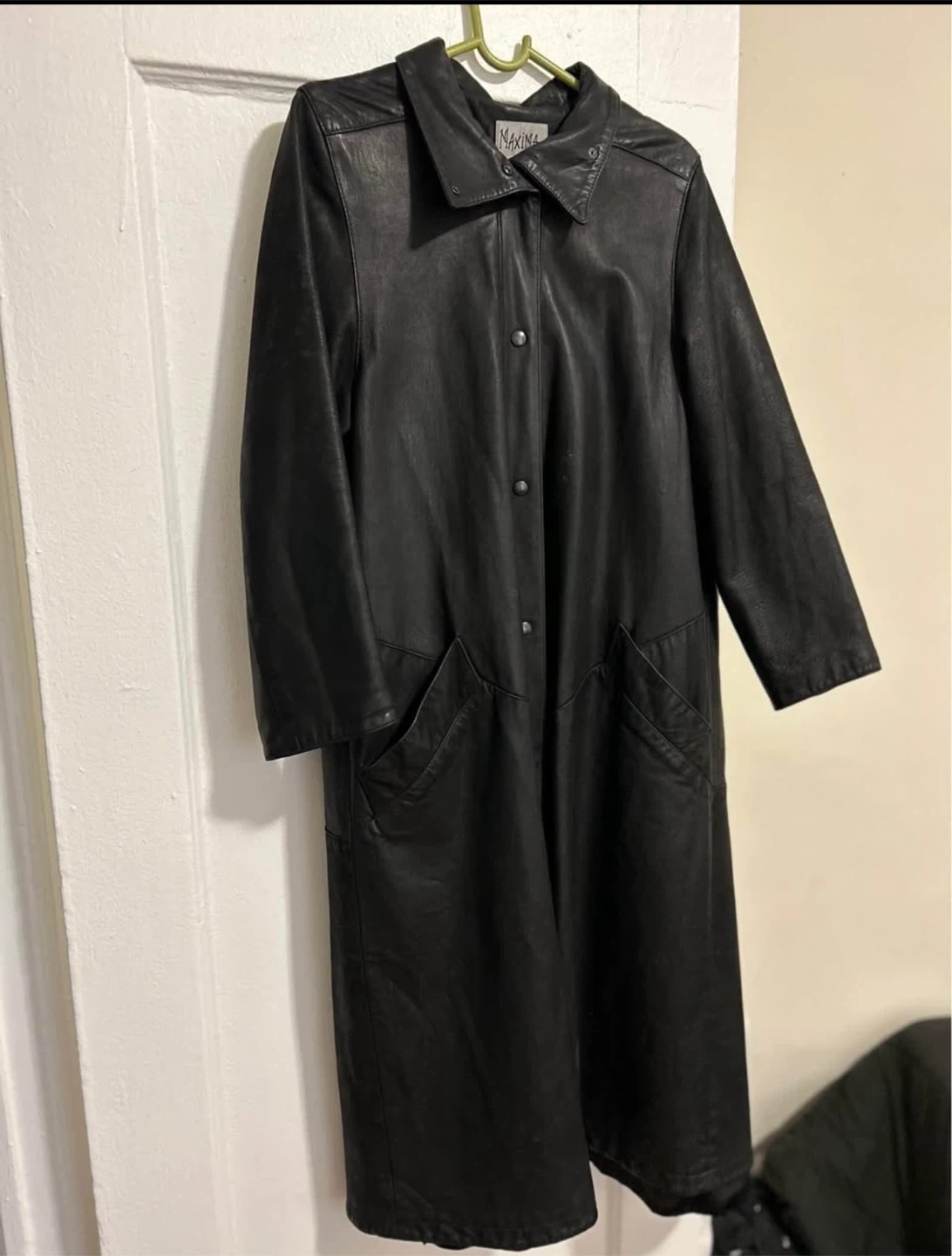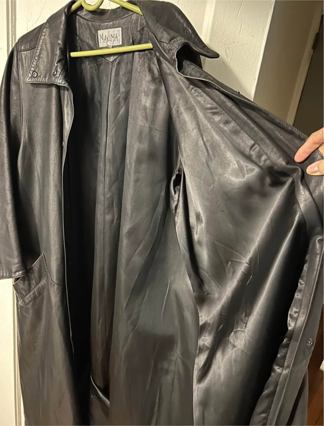 10BEAUTIFUL full length black leather coat. It’s softer leather, lambskin. Size Medium. There are NO holes in coat or pockets. The inside silk lining hem dropped slightly & is an EASY fix to sew by hand (See area circled in pic). NO cleaning necessary. Keeps me VERY warm. Selling because sleeves are a bit too short for me. I’m 5’8”. It’s better for someone slightly to shorter. Can meet at 168th St. @ Broadway #1 subway stop. Plenty of light as well as NYPD protection.