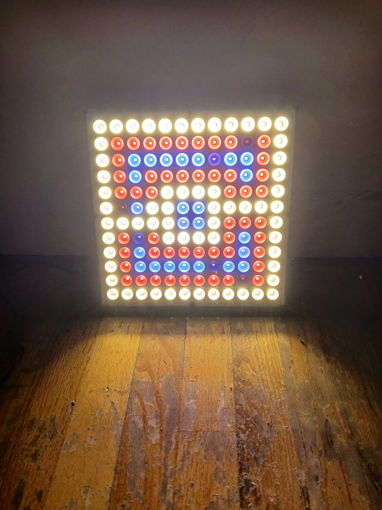 Selling an LED grow light panel. It features a pattern of white, red, and blue lights. Perfect for indoor gardening!
