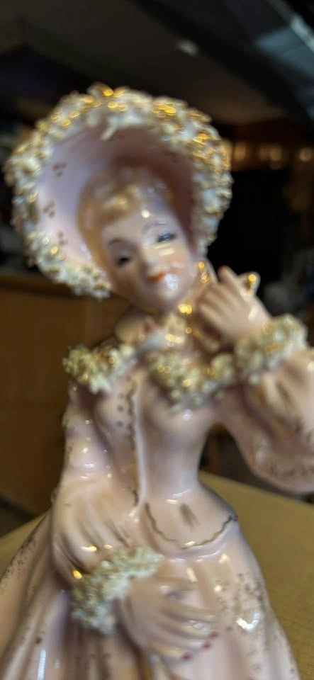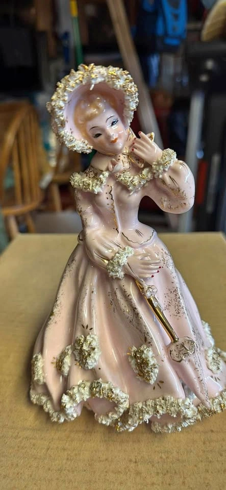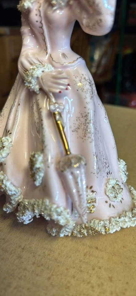Lefton Victorian Lady Pink Spaghetti Trim umbrella 8” Tall. Let me know if you're interested!