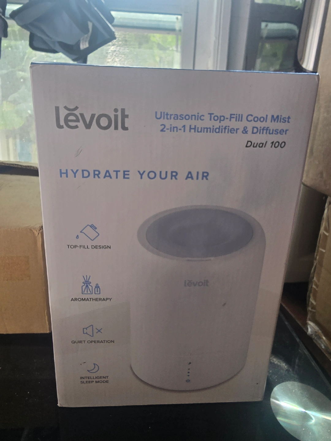 90Selling a Levoit Dual 100 Ultrasonic Top-Fill Cool Mist 2-in-1 Humidifier & Diffuser! It's designed for quiet operation and has an intelligent sleep mode. It also features aromatherapy and a top-fill design for easy use